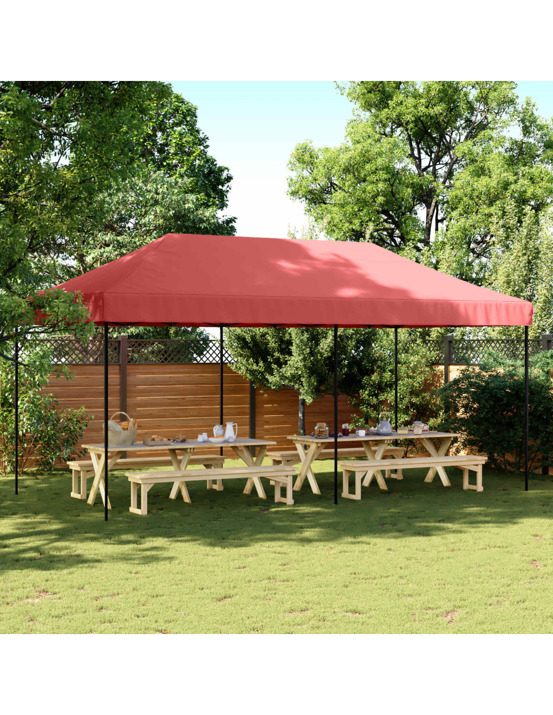 - Tessuto Oxford resistente all'acqua Realizzato in tessuto Oxford, questo gazebo offre un riparo sicuro da piogge inaspettate e sole cocente. Anche se è resistente all'acqua e garantisce un certo comfort, non è consigliabile usarlo in caso di maltempo intenso. Grazie alla sua qualità, mantiene colori e funzionalità nel tempo, rendendolo essenziale per eventi all'aperto.