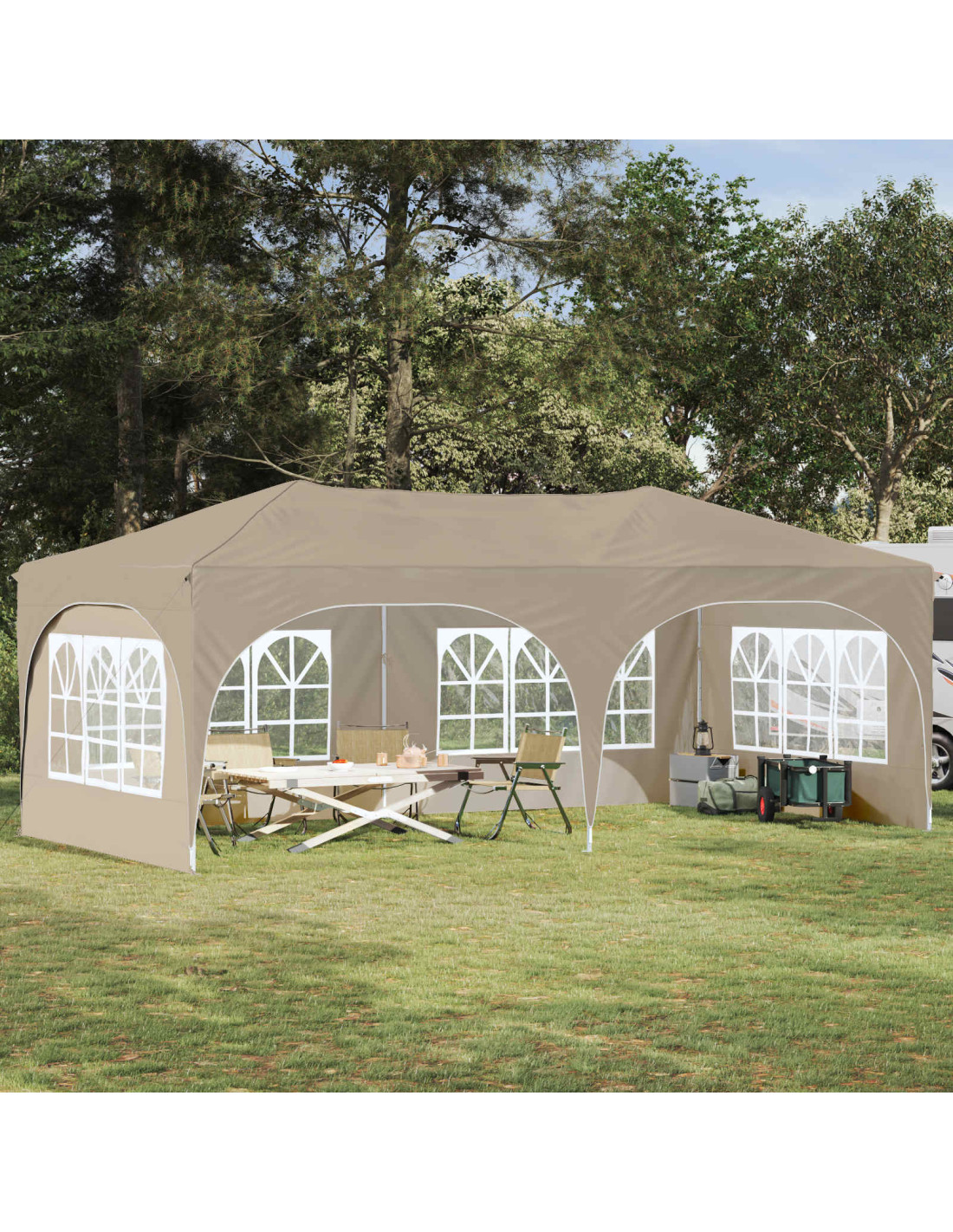 Questa tenda pop-up è perfetta per rendere gli eventi all'aperto indimenticabili. Con il suo tessuto Oxford di alta qualità, ha un look moderno, linee pulite e tanta funzionalità. Che tu stia organizzando una festa in giardino, un matrimonio o un grande evento, questa tenda offre tanto spazio e un'atmosfera elegante. Con la sua copertura ampia è un perfetto mix di stile e praticità, migliorando qualsiasi ritrovo con la sua presenza. Tessuto Oxford durevole: Il materiale principale è la stoffa Oxford, che offre resistenza a diversi tipi di clima. Grazie alle sue proprietà impermeabili e alla protezione UV, tiene al caldo gli ospiti e gli arredi, anche sotto il sole e la pioggia leggera, rendendo gli spazi esterni utilizzabili senza interruzioni. Regolazione dell'altezza: Con tre impostazioni di altezza, questa tenda è super adattabile per eventi di tutte le dimensioni. Sia per una riunione intima che per una grande festa, puoi cambiare l'altezza per ottenere la copertura perfetta. Set-up completo: È dotata di tutto il necessario, comprese 4 corde per il vento e 8 picchetti, per garantirne stabilità anche con vento forte. Montarla è semplice: basta due persone e un martello, rendendola pratica e affidabile. Convenienza pop-up: Questo design intelligente rende l'installazione super veloce, così non hai il fastidio di lunghi montaggi. Perfetta per chi ha poco tempo, ti fa risparmiare energie e ti permette di accogliere gli ospiti all'istante. Istruzioni per la cura: Per tenerla in ottime condizioni, eviti prodotti chimici aggressivi. In questo modo, i materiali e la struttura durano a lungo, permettendo a tutti di godere del suo aspetto e delle sue caratteristiche pratiche senza segni di usura.