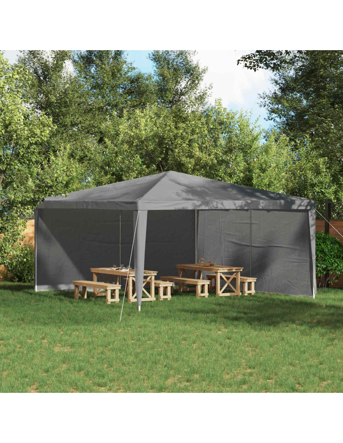 Il pannello laterale del Modern Party Tent è pensato per aggiungere un tocco elegante e pratico ai tendoni per feste, perfetto per eventi all'aperto. Il design moderno assicura un look accattivante, puntando su semplicità e decorazione minimalista. Di forma rettangolare, si adatta facilmente a vari eventi e raduni. Materiale durevole: Questi pannelli laterali sono in PE, resistenti ai raggi UV e all'acqua, perfetti per l'utilizzo tutto l'anno. Robusti e durevoli, sono ideali per l'uso all'aperto, offrendo sicurezza in ogni clima. Pacchetto completo: Il prodotto include due pannelli laterali, creando riparo pratico per il tuo tendone. Usandoli insieme, ottieni uno spazio più riparato, fornendo ombra e privacy e migliorando l'atmosfera delle feste. Facile connessione: Con una cerniera centrale comoda, il pannello laterale permette un facile accesso durante gli eventi. Questo design migliora l'usabilità, rendendo semplice per gli ospiti entrare e uscire, mantenendo tutto in ordine. Installazione semplice: I pannelli si attaccano con velcro, rendendo il montaggio rapido. Questo sistema mantiene i pannelli in posizione, facilitando l'installazione e lo smontaggio. Stoccaggio pratico: Il leggero PE permette di piegare facilmente i pannelli dopo l'uso. È facile da riporre, risparmiando spazio quando il tendone non è in uso.