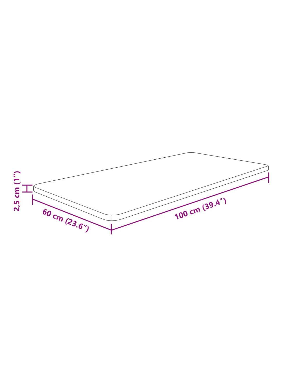 - Dimensioni: 100x60x2,5 cm (L x P x S)