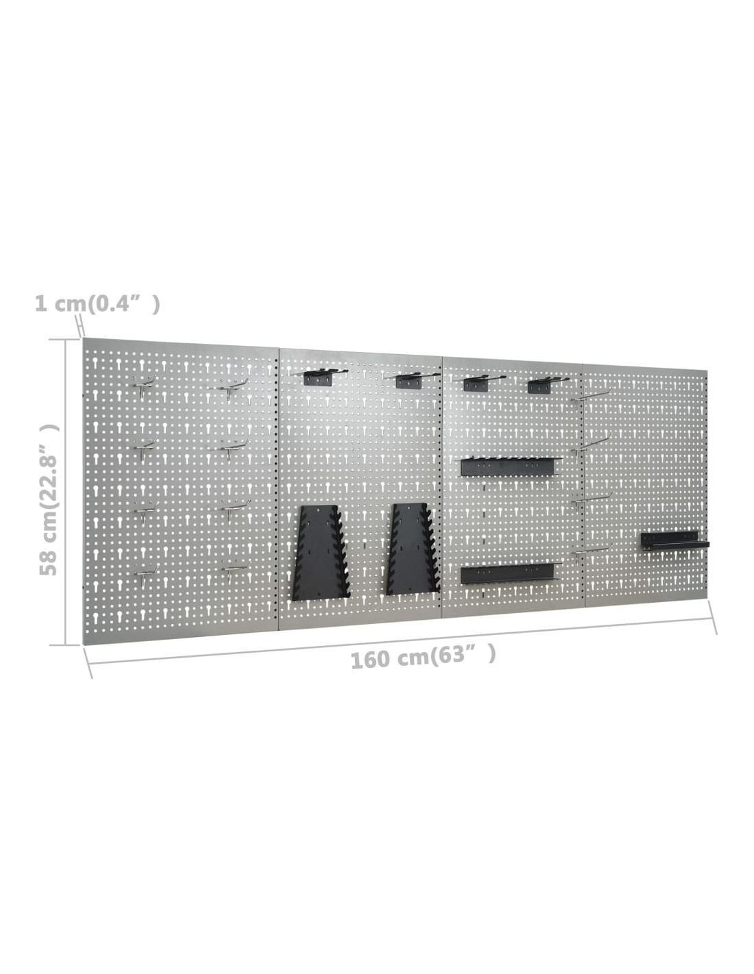 Questi pannelli per utensili sono realizzati in acciaio robusto per sostenere il peso di vari strumenti, come trapani, pinze, cacciaviti e chiavi. I pannelli sono dotati di fori per fissare gli strumenti in modo facile e sicuro. I 4 pannelli a parete possono essere fissati insieme per offrire una maggiore rigidità. Costituiscono un'aggiunta ideale al banco da lavoro e agli armadietti da officina con una larghezza pratica di 160 cm.