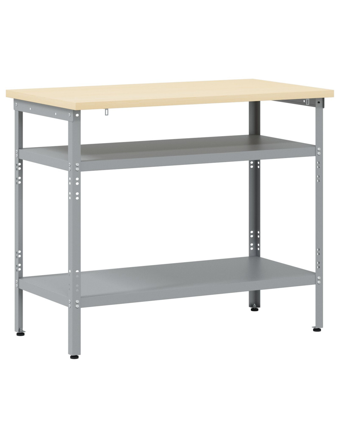 - Componenti Inclusi: Dotato di più ripiani in metallo grigio, questo tavolo è versatile e permette di riporre strumenti e forniture in modo pratico. Ogni ripiano è progettato per essere stabile e forte, adatto ad usi industriali e commerciali senza rinunciare a stile e funzionalità.
