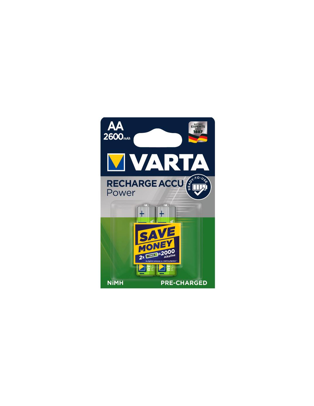 Varta Batteria Ricaricabile AA Stilo, 2600 mAh, Confezione da 2 Pezzi, Pre-caricate
