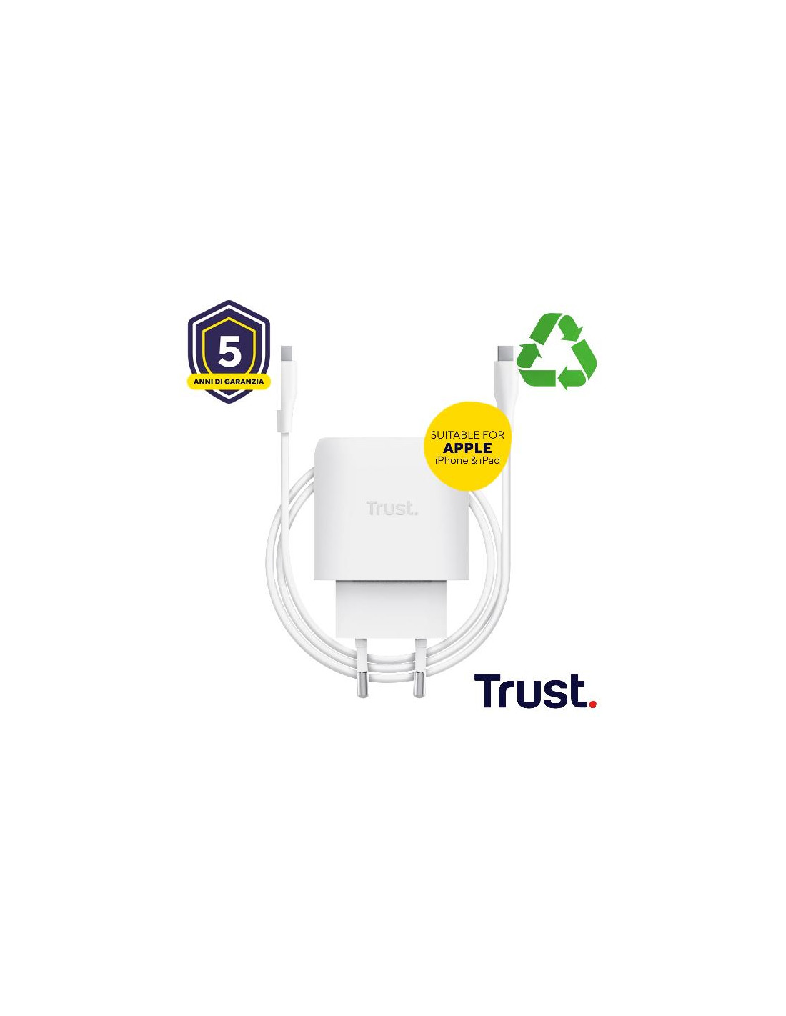 ALIMENTATORE 45W USB-C PER APPLE - PLASTICA RICICLATA 50% - TRUST MAXO F/APPLE BIANCO