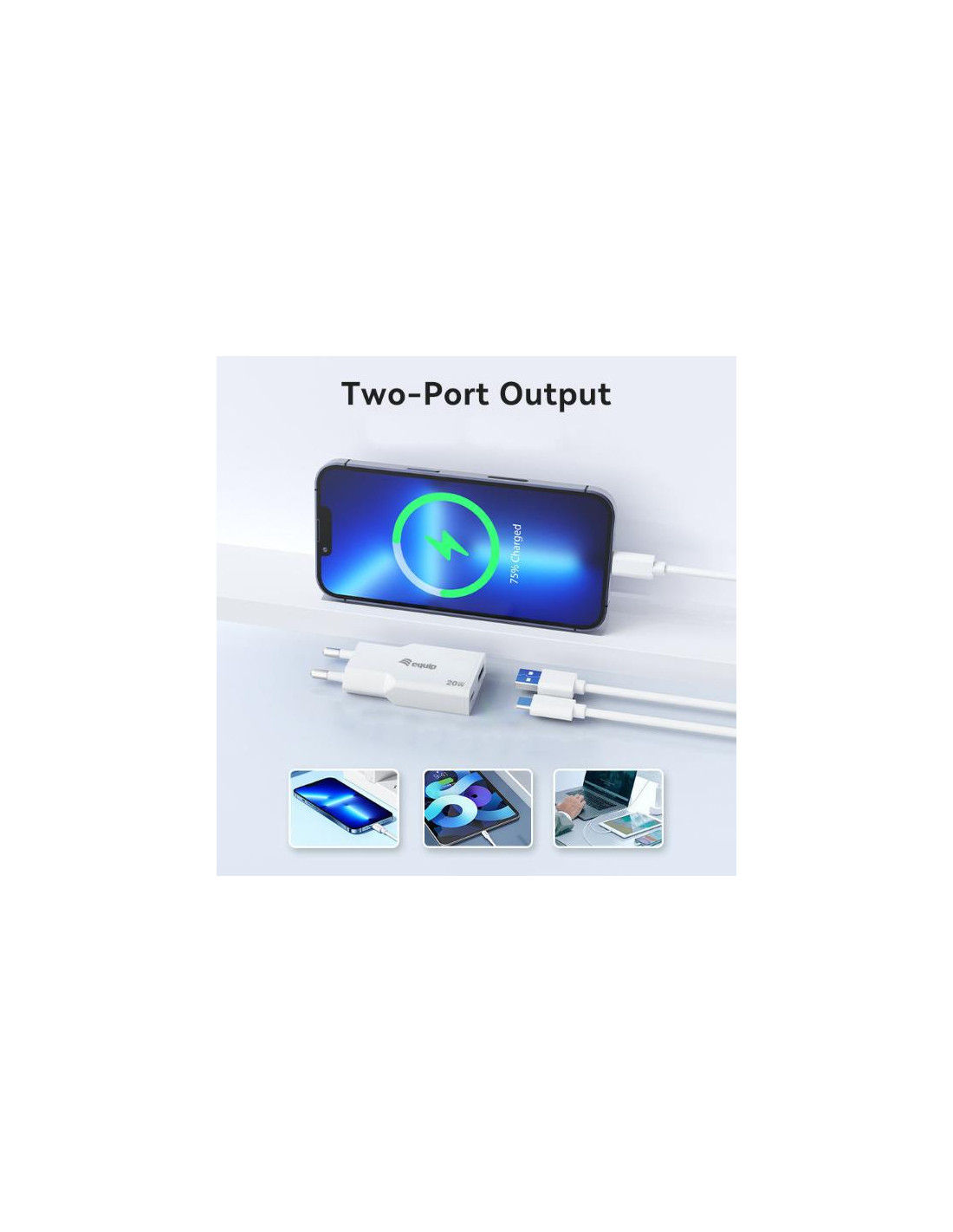EQUIP - Caricabatterie GaN PD sottile USB a 2 porte da 20W, 1x USB-C + 1x USB-A