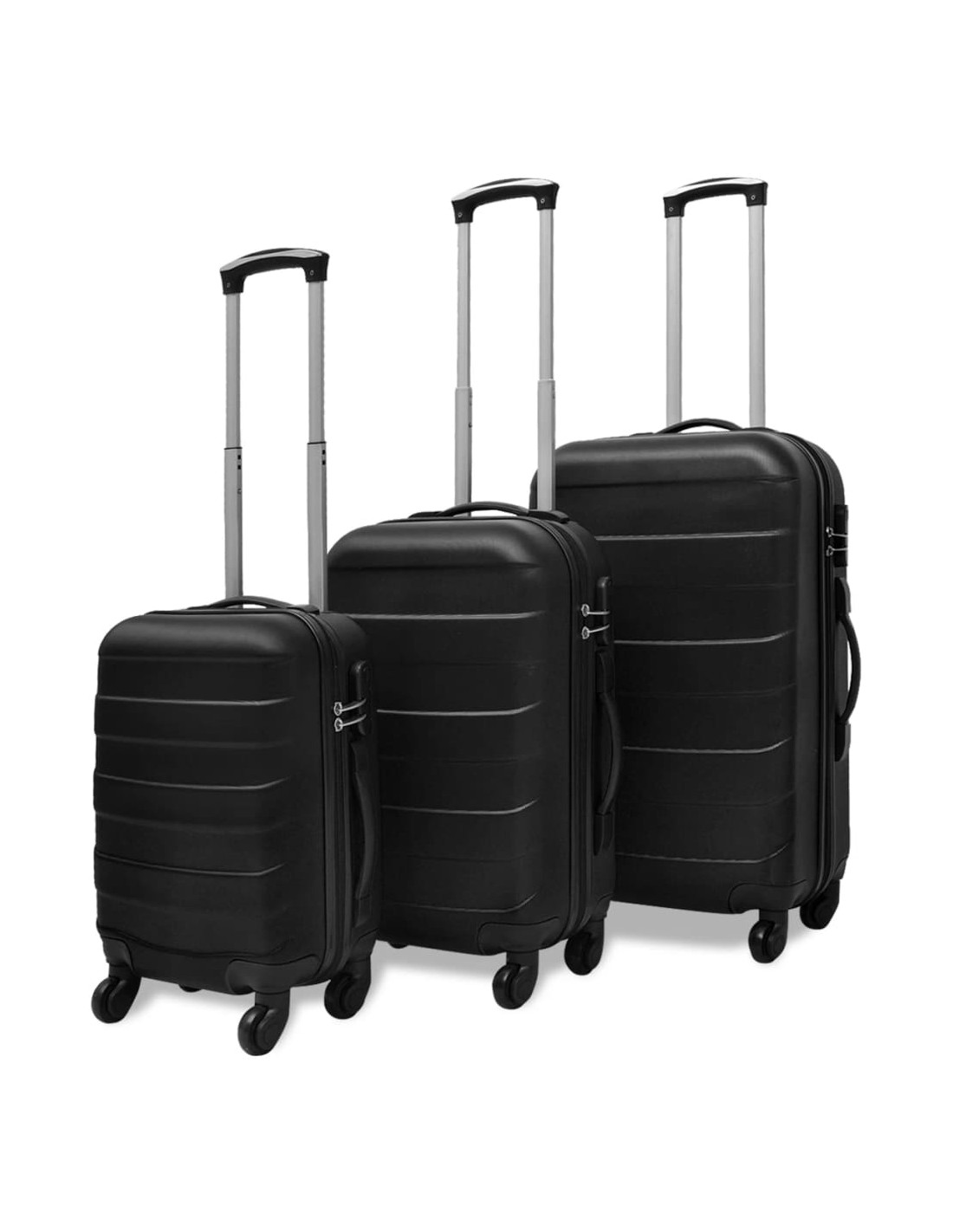 Questo set trolley di alta qualità, ha gusci duri in ABS resistente e serrature di sicurezza per mantenere le cose in sicurezza. Le sue cinghie di tensione interne conterranno le vostre cose ben organizzate e in posizione. Oltre alla maniglia telescopica ergonomica, ogni trolley è dotato anche di due maniglie per il trasporto (superiore e laterale) e quattro rotelle a 360 gradi, che offrono una confortevole esperienza di viaggio.