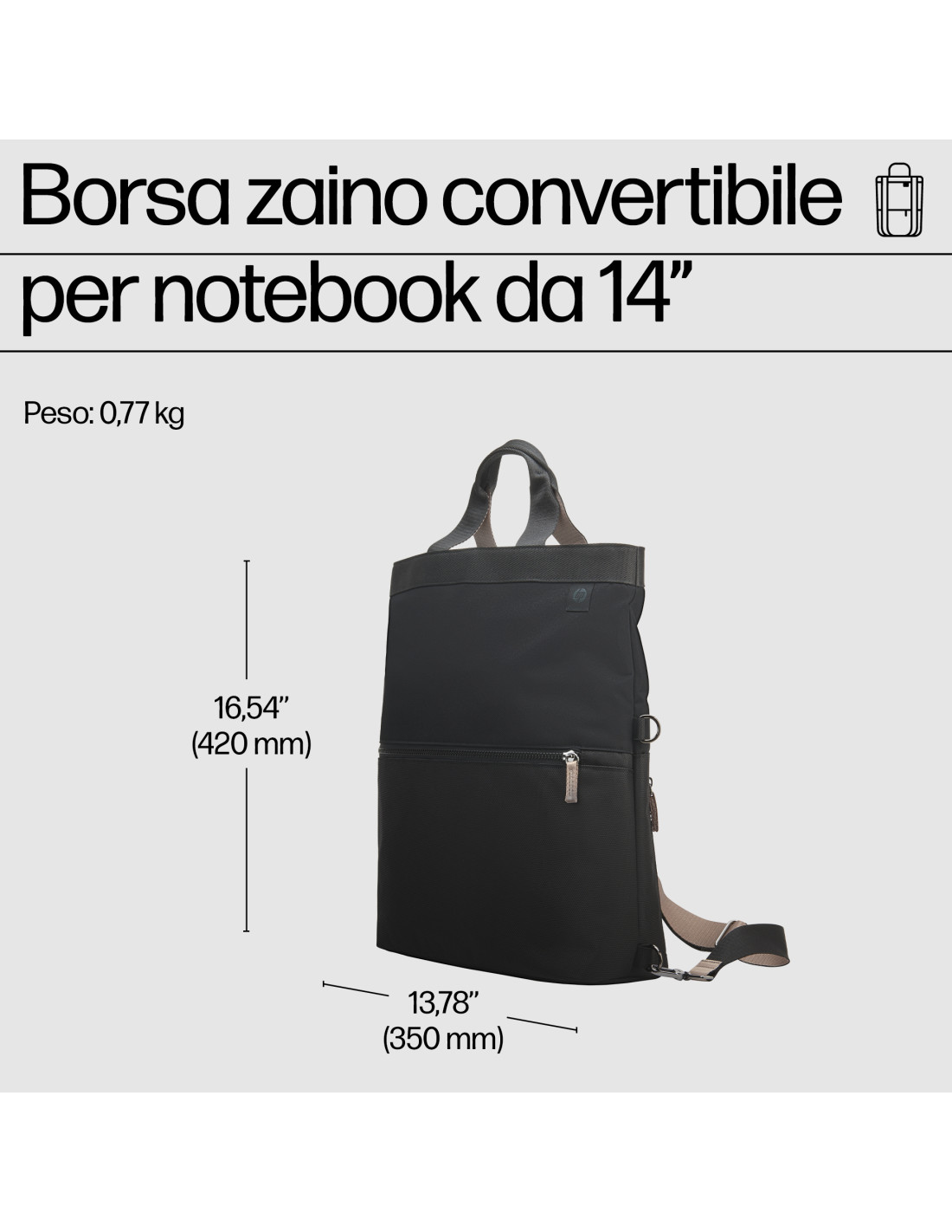 Ovunque vi portino lavoro e divertimento, potete portare la vostra preziosa tecnologia sempre con voi, grazie a uno zaino leggero che si adatta alle vostre esigenze e al vostro stile. Lo zaino per notebook da 14''[1] può essere trasformato in una borsa a mano o a tracolla, oppure ripiegato, per portarlo sempre con voi ovunque andiate.