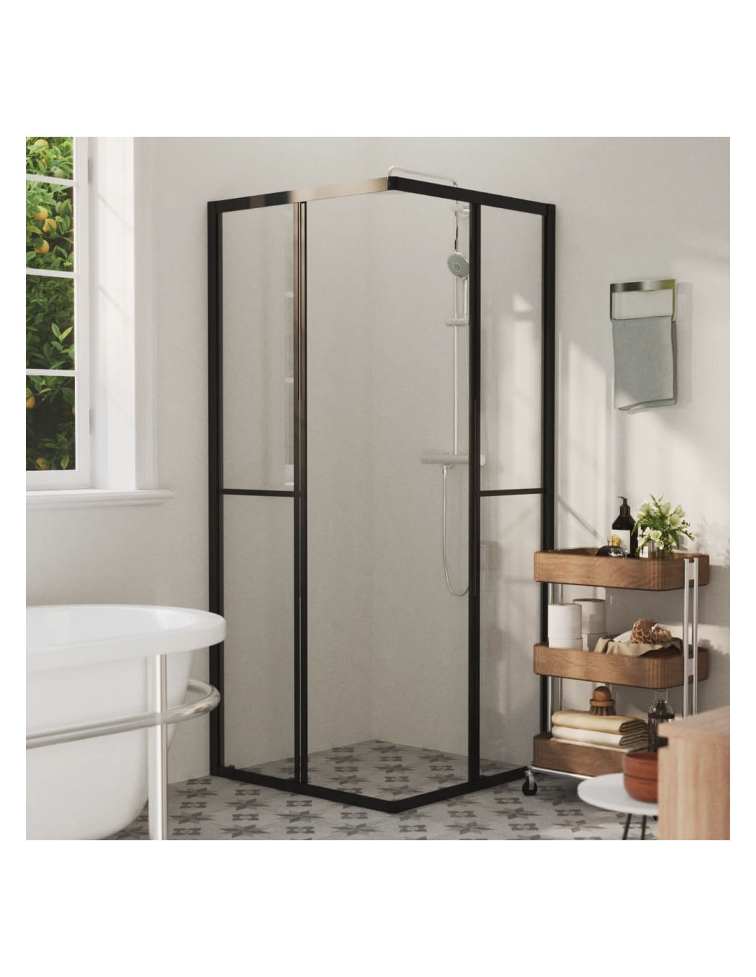 Il profilo in alluminio e i pannelli laterali in vetro trasparente donano al box doccia un aspetto pulito, aggiungendo uno stile elegante al vostro bagno. L'installazione e il montaggio sono molto semplici grazie ai materiali di montaggio inclusi.