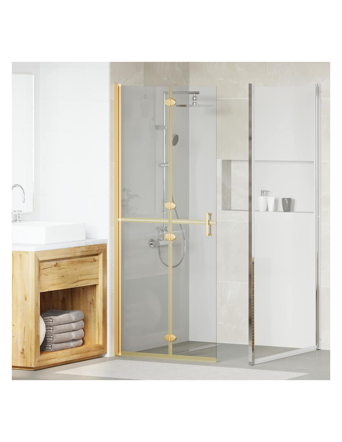 - Design e funzionalità pieghevoli: Il design pieghevole di questa parete è versatile e salvaspazio. Si adatta a vari bagni, il che la rende perfetta per diverse configurazioni, garantendo comfort senza ingombro.