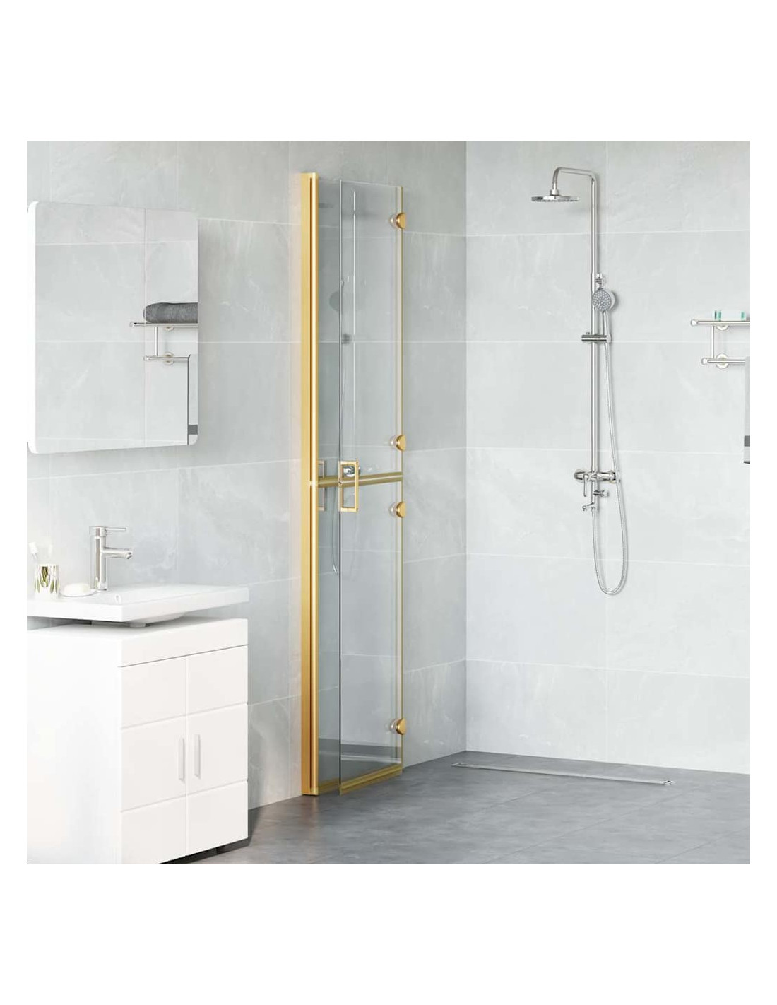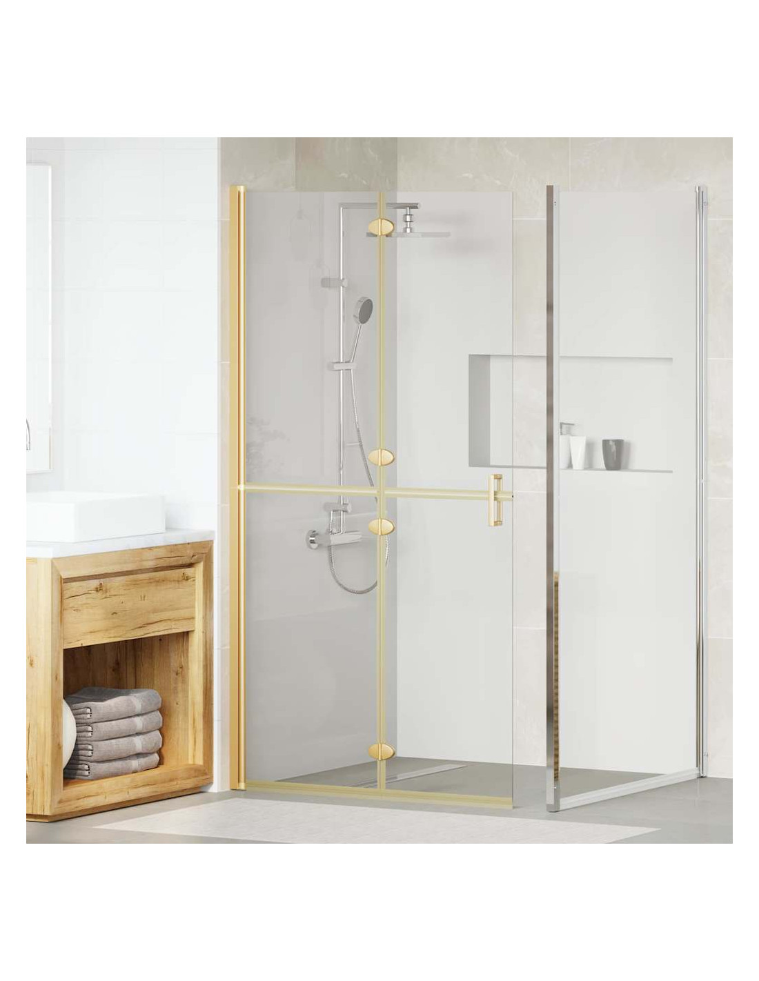 - Design e funzionalità pieghevoli: Il design pieghevole di questa parete è versatile e salvaspazio. Si adatta a vari bagni, il che la rende perfetta per diverse configurazioni, garantendo comfort senza ingombro.