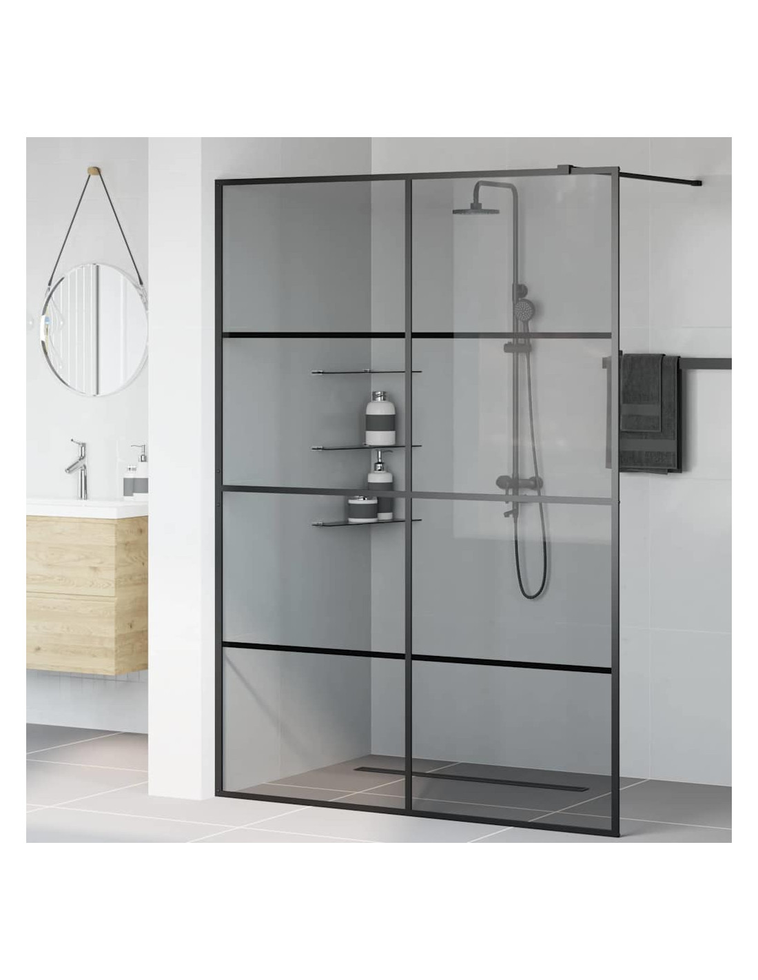 - Materiali: Questo muro doccia è fatto di vetro temperato di alta qualità, quindi è duraturo e resistente. La superficie trasparente non solo è bella, ma offre anche una gran solidità. L'alluminio aiuta a mantenerlo robusto, garantendone la longevità.