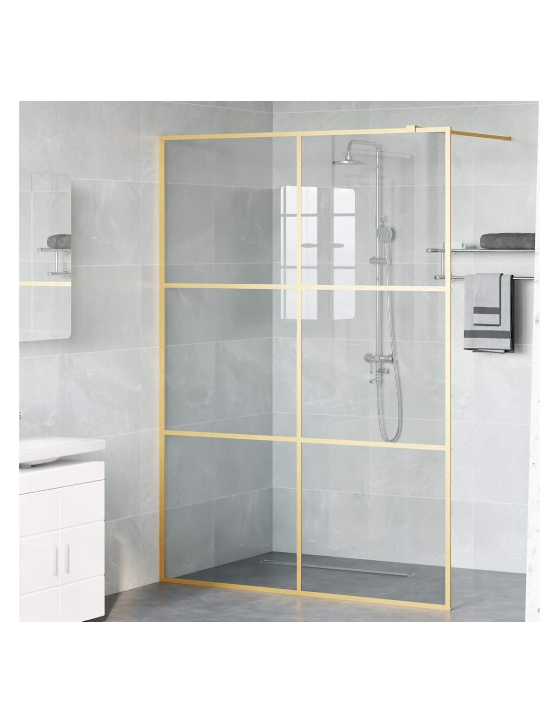 - Trasparenza elegante: Fatto di vetro temperato di alta qualità, il muro doccia offre una trasparenza incredibile, mantenendo l'ambiente luminoso e arioso. Questo materiale non solo valorizza il design moderno, ma è anche sicuro grazie alle sue caratteristiche antirottura. La superficie liscia e perfetta dona un tocco di lusso, aumentando l'appeal visivo di ogni bagno.