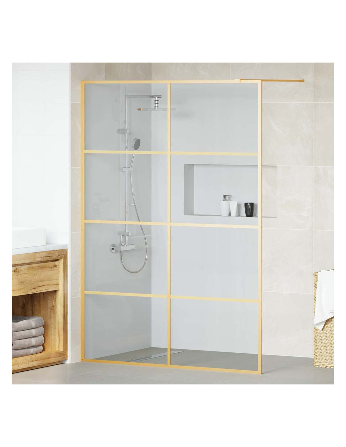 - Materiali: Questo muro doccia è fatto di vetro temperato di alta qualità, quindi è duraturo e resistente. La superficie trasparente non solo è bella, ma offre anche una gran solidità. L'alluminio aiuta a mantenerlo robusto, garantendone la longevità.