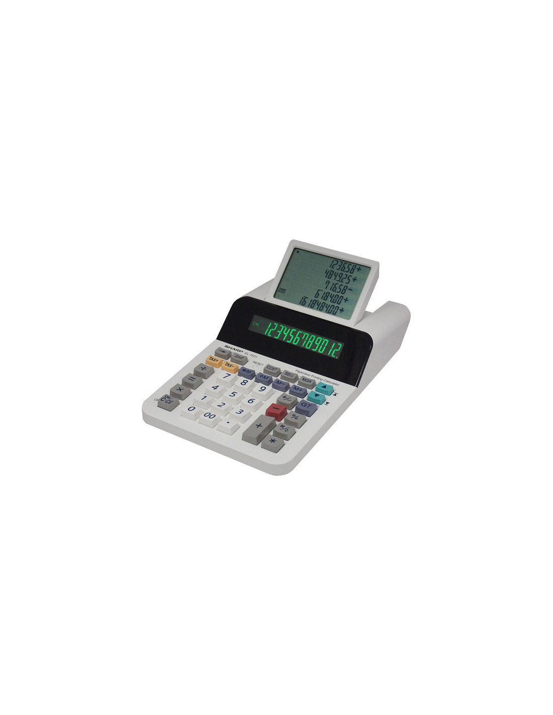 Sharp EL-1501. Fattore di forma: Desktop, Tipo: Calcolatrice con stampa. Cifre: 12 cifre, Righe di testo: 5 linee. Registri di memoria: 4. Calcolatore tasse. Alimentazione: Batteria. Colore del prodotto: Multicolore, Bianco