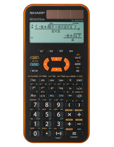 Sharp EL-W531XGYR, Tasca, Calcolatrice scientifica, 2 linee, Batteria/Solare, Nero, Arancione