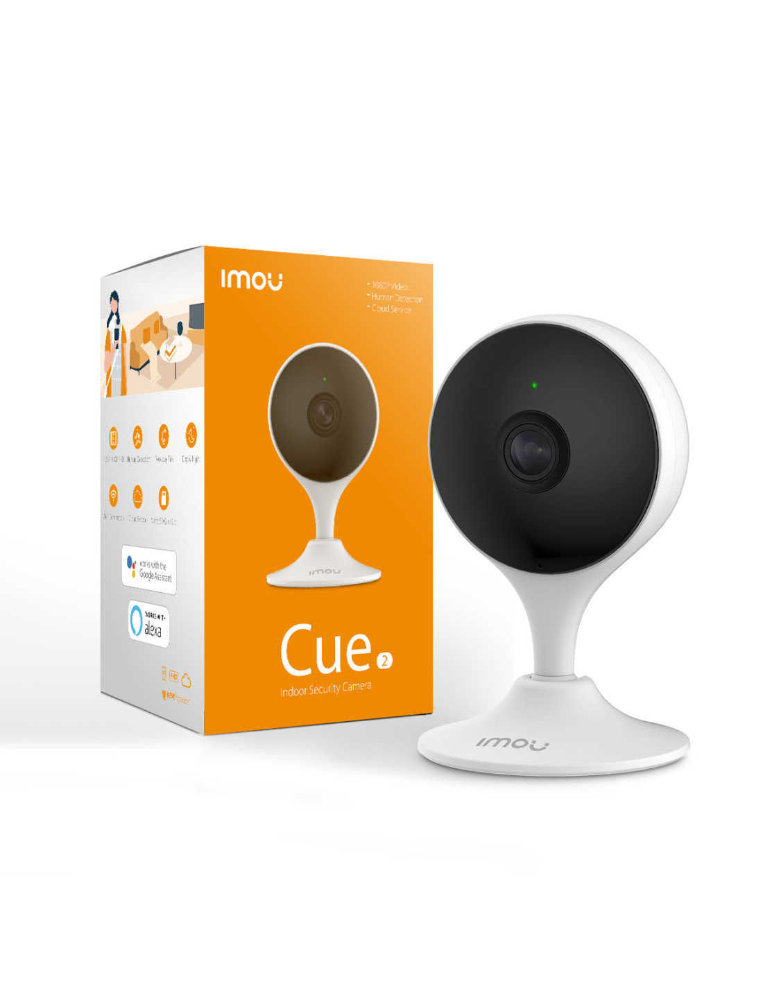 Imou Cue 2 è una telecamera di sicurezza per interni con risoluzione Full HD (1080P) da 2 MP. Cue 2 è economica e facile da installare, basta scaricare l'app Imou Life e seguire i passaggi. Cue 2 ha una visione notturna a infrarossi fino a 10 metri, è dotato di altoparlanti e microfono per una comunicazione bidirezionale full duplex (ascolta e rispondi). Con rilevatore di movimento e rumorosità, è inoltre dotata di tutto il materiale per l'installazione (viti, tasselli e piastra di montaggio).