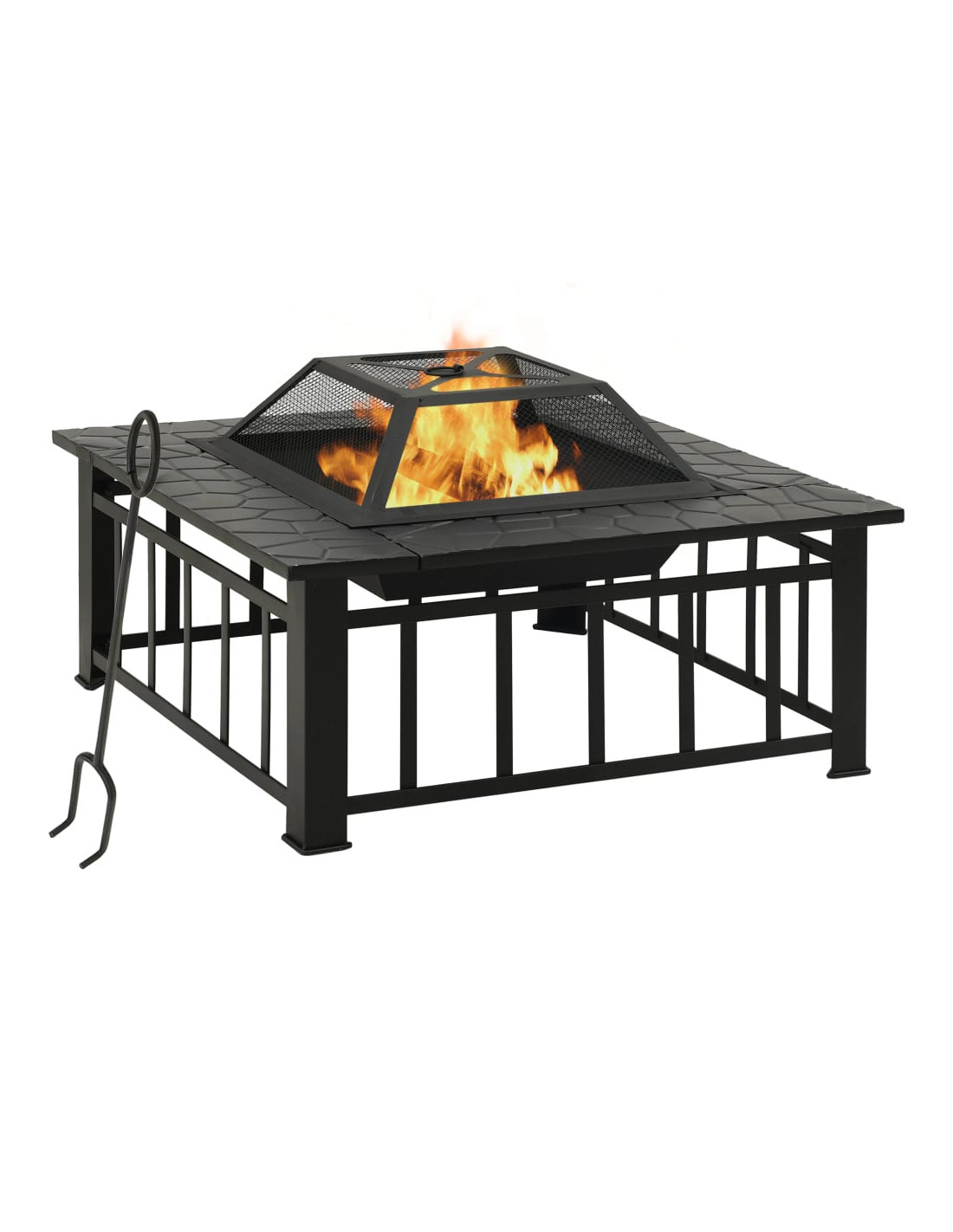 Realizzato in acciaio, il braciere da patio è eccellente per assorbire e irradiare calore. Il coperchio in rete consente di guardare il fuoco che brucia e racchiude il fuoco per sicurezza, oltre a prevenire la fuoriuscita di scintille e detriti. Inoltre, c'è un comodo anello nel coperchio a rete in modo da poterlo rimuovere facilmente. L'attizzatoio in metallo incluso può essere utilizzato sia per rimuovere la copertura in rete che per riorganizzare i tronchi. Dotato di una grande ciotola, questo caminetto può essere utilizzato non solo per bruciare il fuoco, ma anche per contenere bevande ghiacciate in cubetti di ghiaccio.