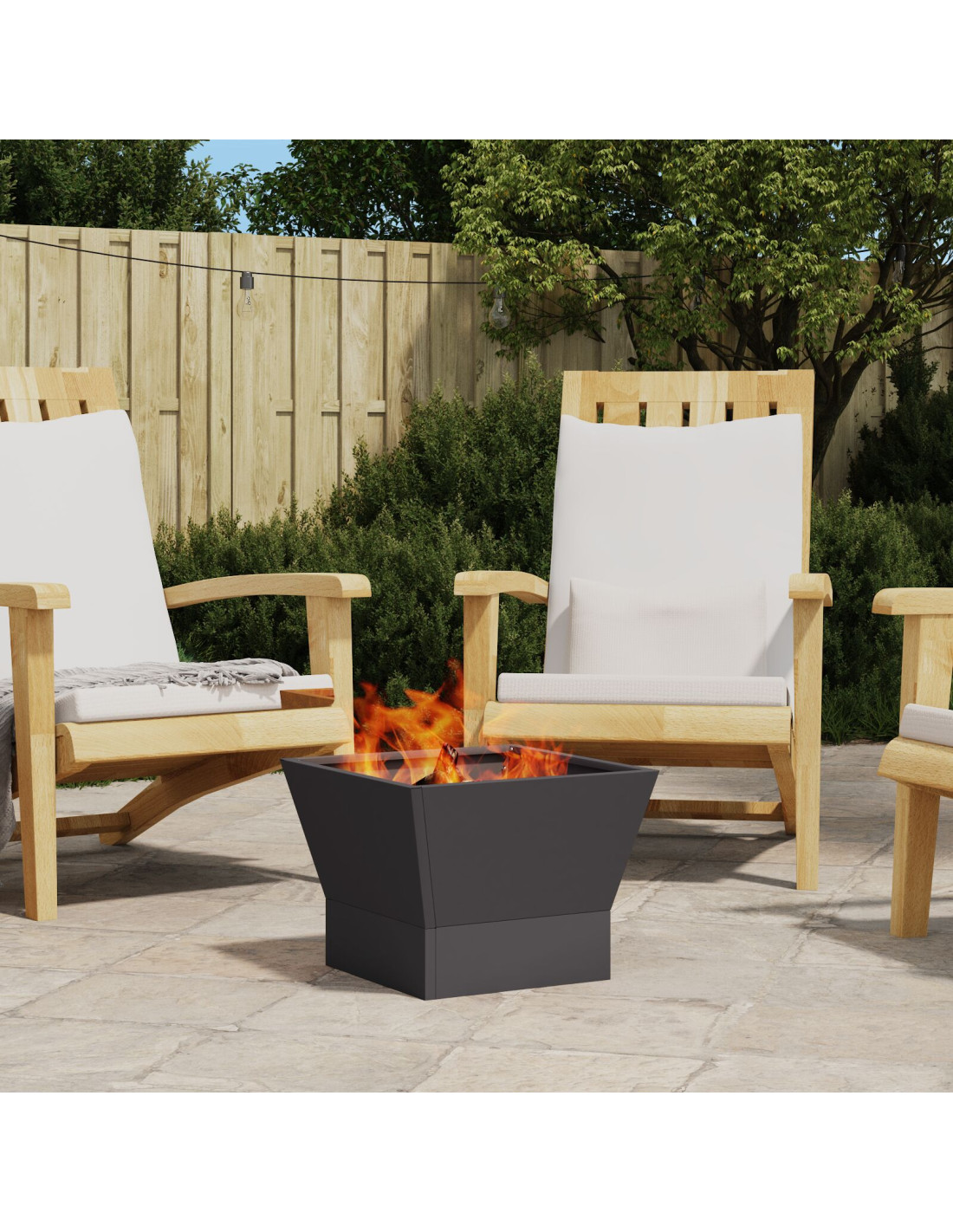 Questo braciere in metallo è ideale per ogni giardino o terrazza. Disegnato solo per uso esterno, porta calore e stile ai tuoi eventi. La sua forma quadrata elegante si adatta a vari stili moderni all'aperto, dando un'atmosfera accogliente per incontri sociali o momenti di relax nella natura. Goditi il look semplice e affascinante di questo braciere mentre ti rilassi attorno al fuoco.
