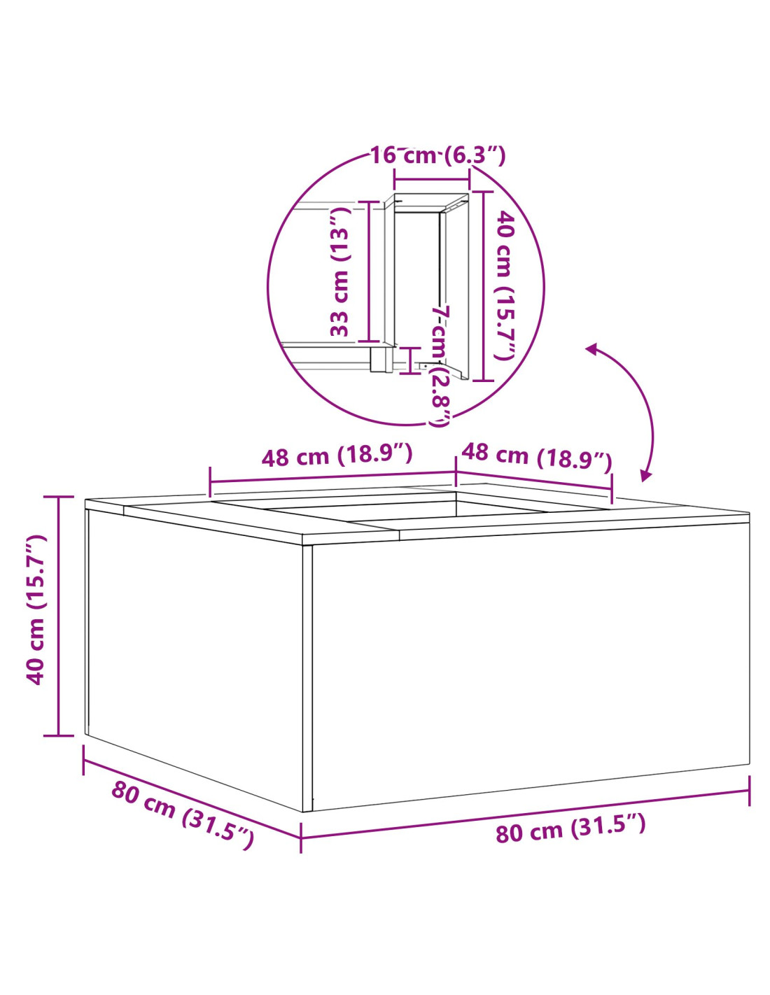 - Dimensioni complessive: 80 x 80 x 40 cm (L x P x A)