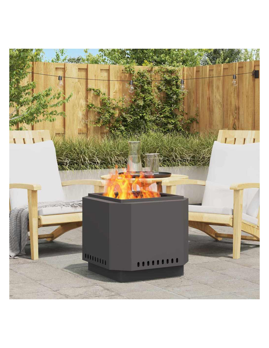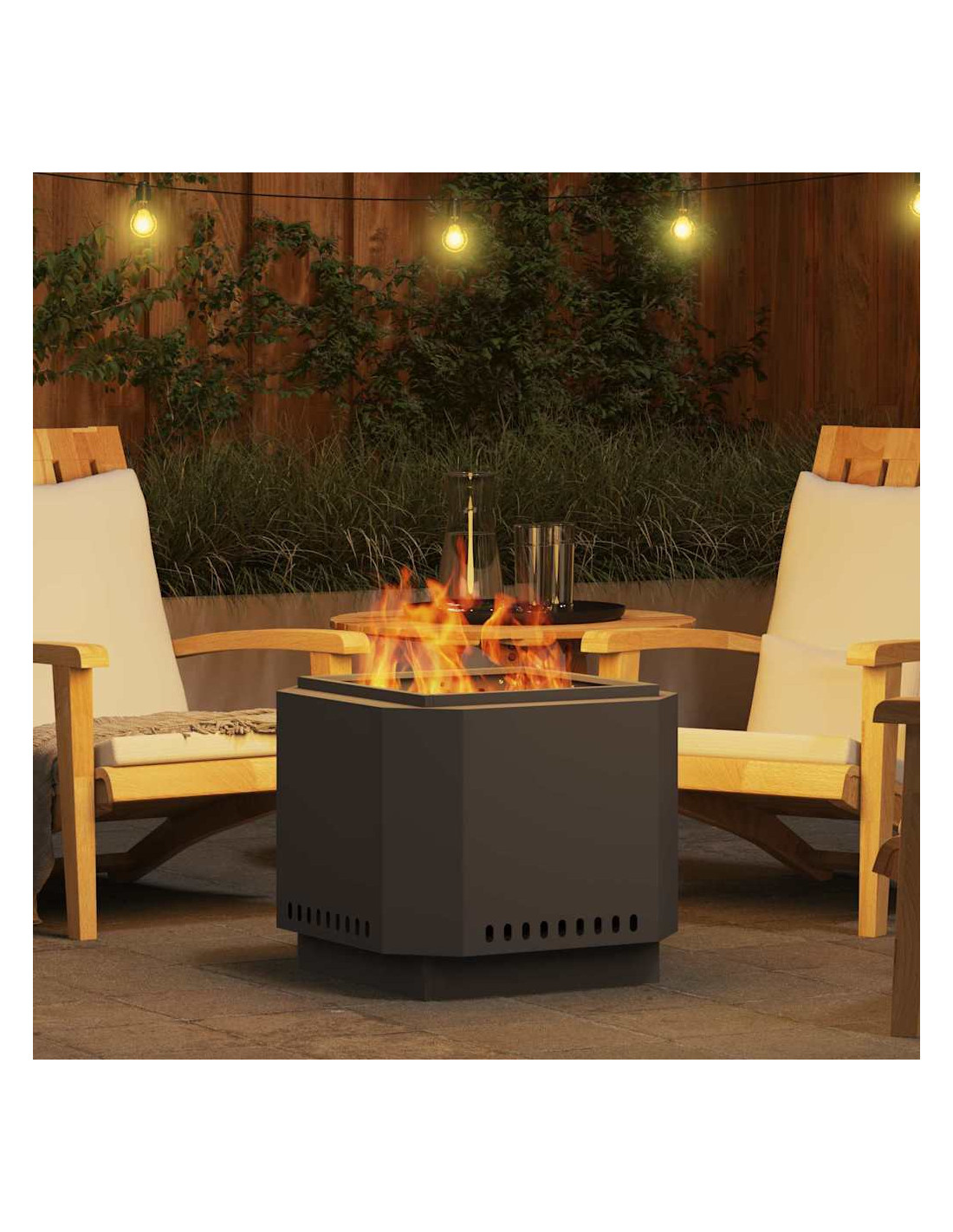 - Dispersione Efficiente del Calore: Grazie al design aperto, disperde il calore in modo efficace, riscaldando l'area intorno e mantenendo una combustione continua, per serate piacevoli in qualsiasi stagione.