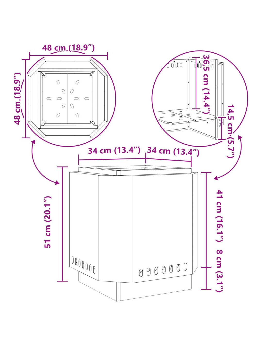 - Dispersione Efficiente del Calore: Grazie al design aperto, disperde il calore in modo efficace, riscaldando l'area intorno e mantenendo una combustione continua, per serate piacevoli in qualsiasi stagione.