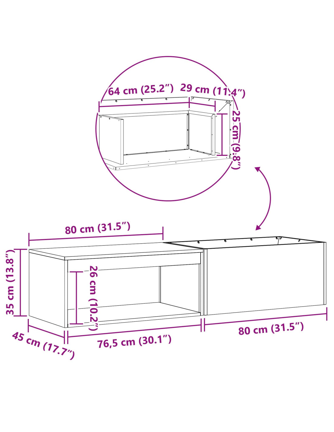 - Dimensioni complessive: 160 x 45 x 35 cm (L x P x A)