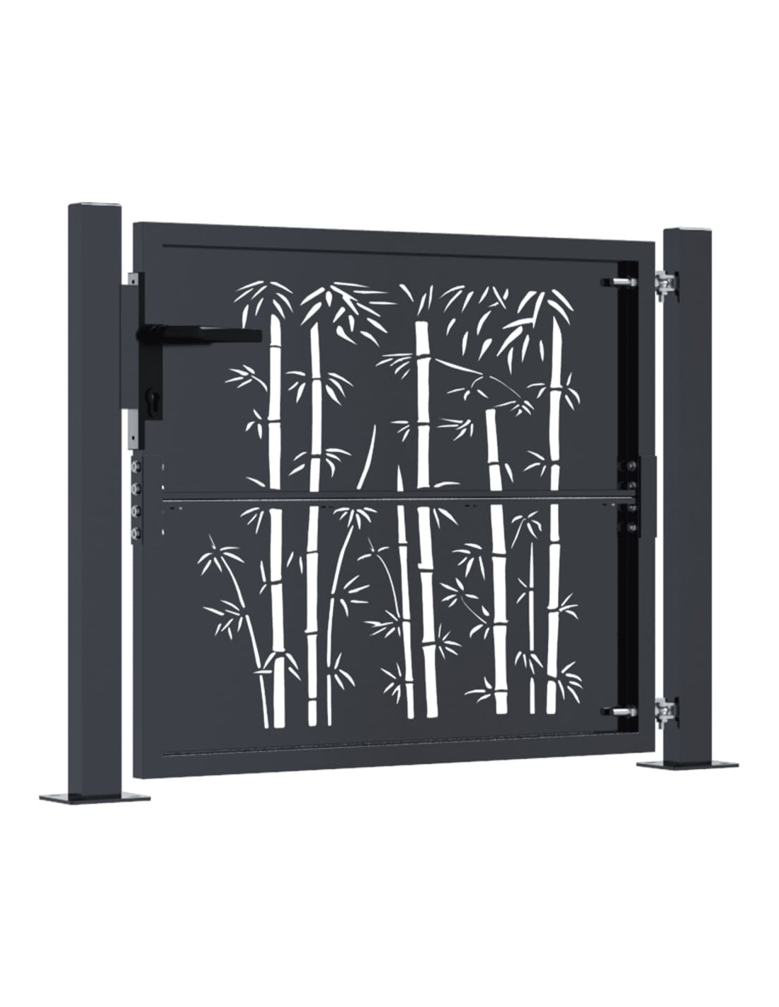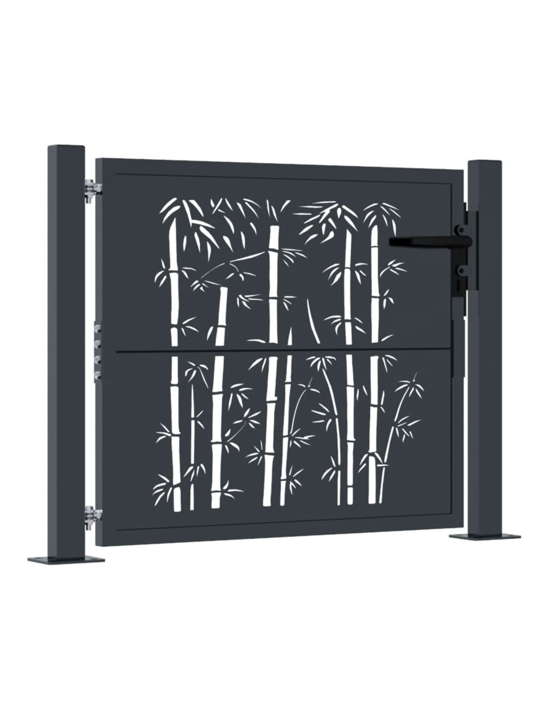 Cancello Giardino Antracite 105x80 cm in Acciaio Design Bambù