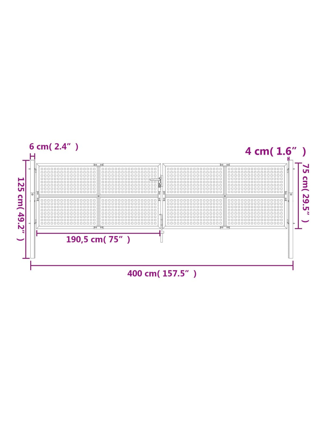 - Dimensioni complessive del cancello: 400 x 125 cm (L x A)