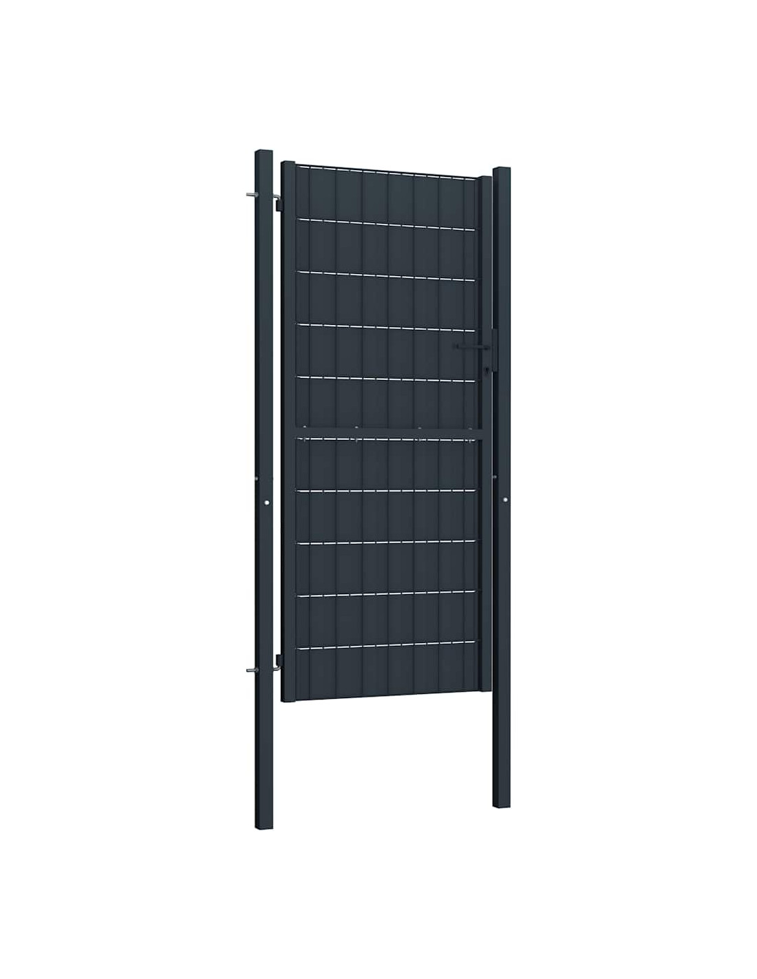 Il cancello del giardino è realizzato in film in PVC e acciaio, materiale che garantisce la sua eccellente durata e robustezza. Grazie alla sua struttura con elementi ravvicinati il cancello della recinzione offre ulteriore rigidità. Questo cancello per giardino offre anche un elevato livello di sicurezza e privacy, andando a formare un ingresso favoloso per la vostra proprietà. Il cancello include due solidi paletti e robuste cerniere per una facile installazione.