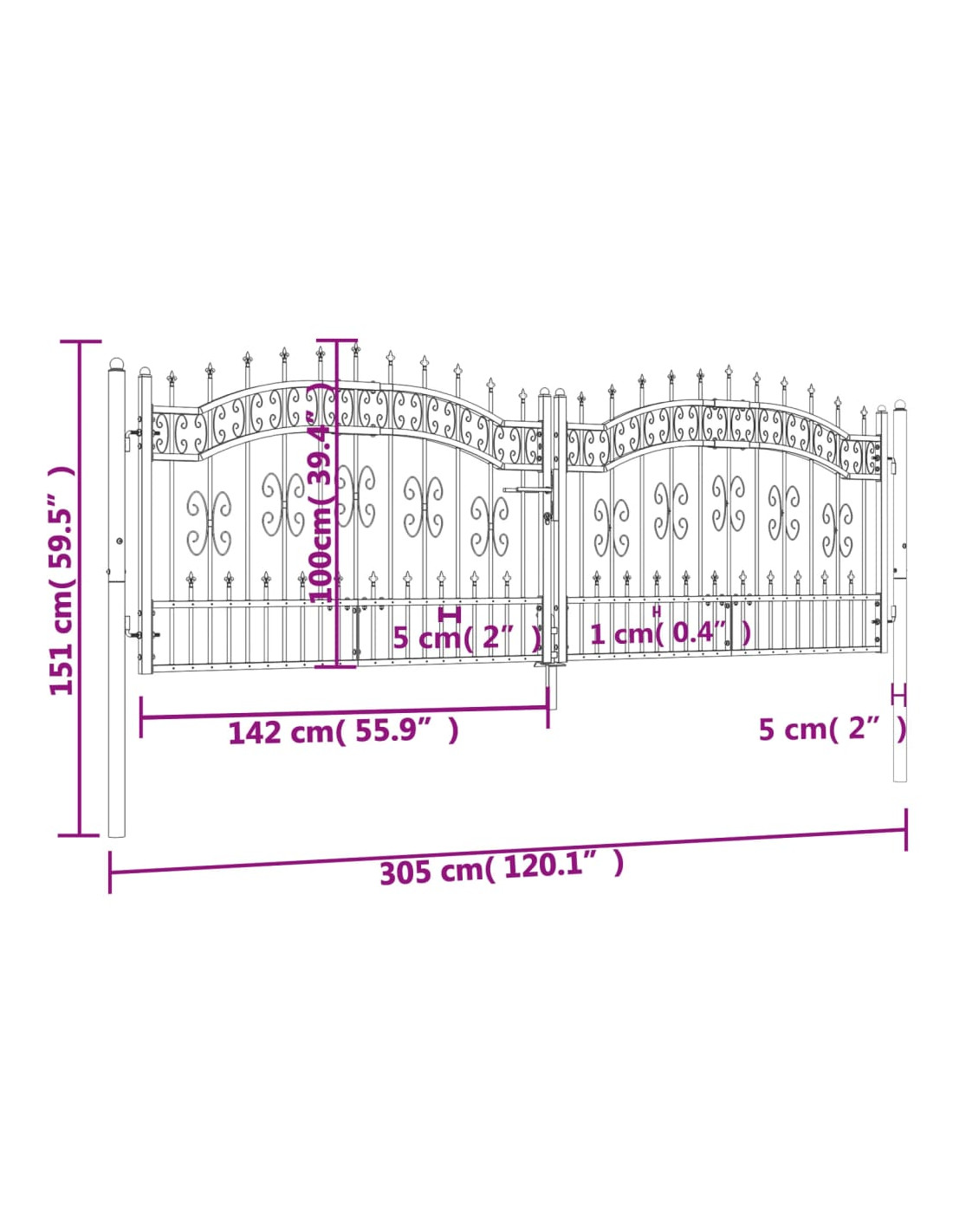 - Design di alta sicurezza: Il cancello fornisce un alto grado di sicurezza, grazie all'elegante design ad arco della parte superiore e ai robusti sostegni orizzontali che rinforzano il telaio e formano un incredibile ingresso per la vostra proprietà.