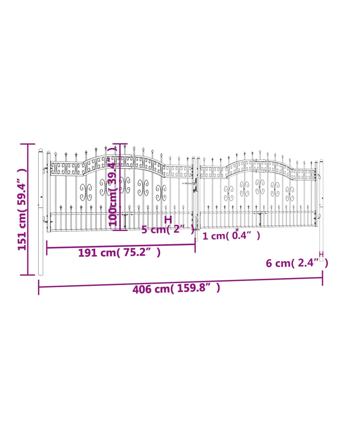 - Design di alta sicurezza: Il cancello fornisce un alto grado di sicurezza, grazie all'elegante design ad arco della parte superiore e ai robusti sostegni orizzontali che rinforzano il telaio e formano un incredibile ingresso per la vostra proprietà.