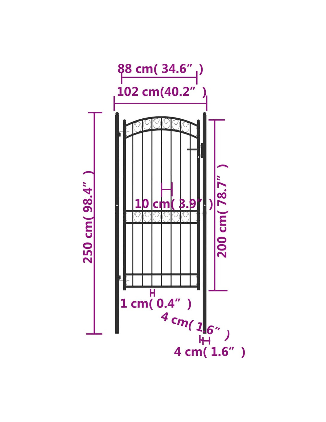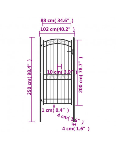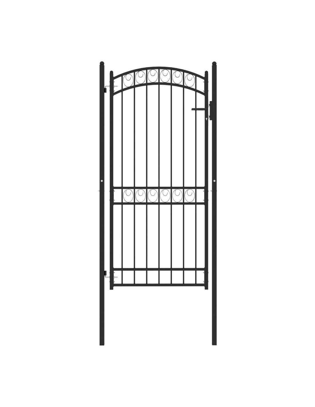 Grazie all'elegante design ad arco e ai robusti sostegni orizzontali di rinforzo per il telaio, il nostro cancello da giardino offre la massima sicurezza, fornendo uno splendido punto di ingresso nella vostra proprietà. Fabbricato in acciaio robusto, l'ingresso è verniciato a polvere per resistere a ruggine e corrosione. È inoltre dotato di una serratura con tre chiavi e viene fornito con due pali robusti, dotati di resistenti cerniere, per una facile installazione.