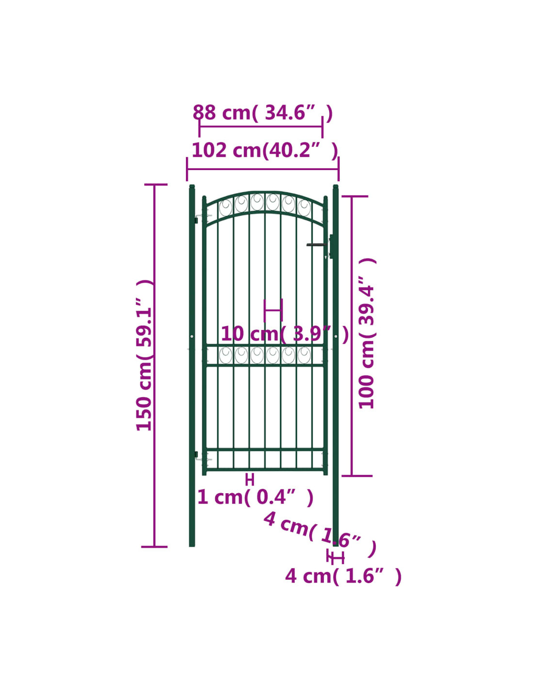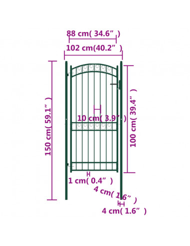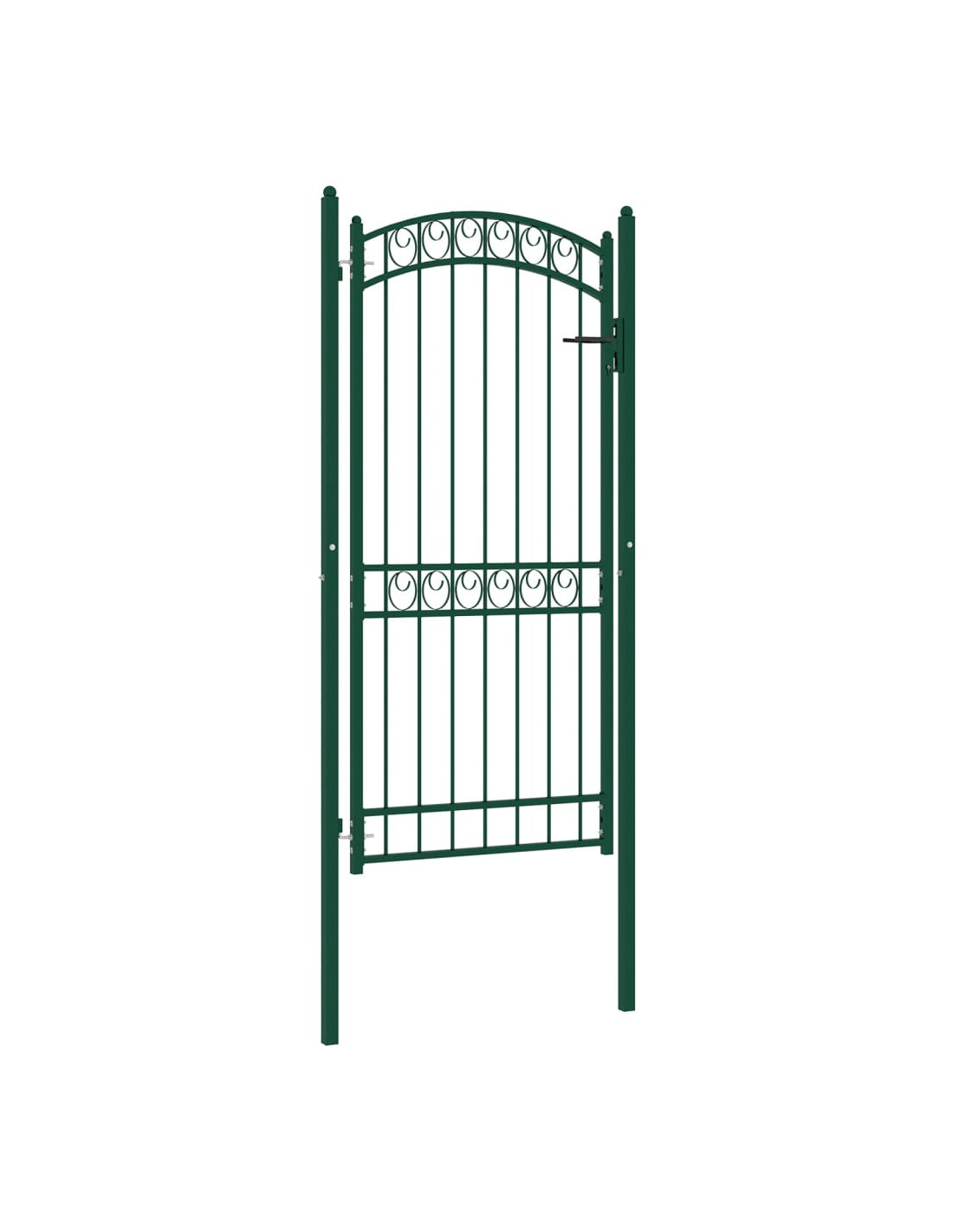 Grazie all'elegante design ad arco e ai robusti sostegni orizzontali di rinforzo per il telaio, il nostro cancello da giardino offre la massima sicurezza, fornendo uno splendido punto di ingresso nella vostra proprietà. Fabbricato in acciaio robusto, l'ingresso è verniciato a polvere per resistere a ruggine e corrosione. È inoltre dotato di una serratura con tre chiavi e viene fornito con due pali robusti, dotati di resistenti cerniere, per una facile installazione.