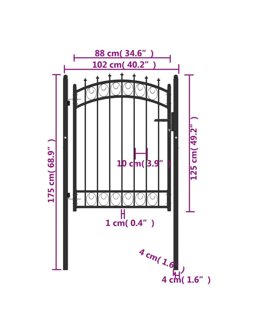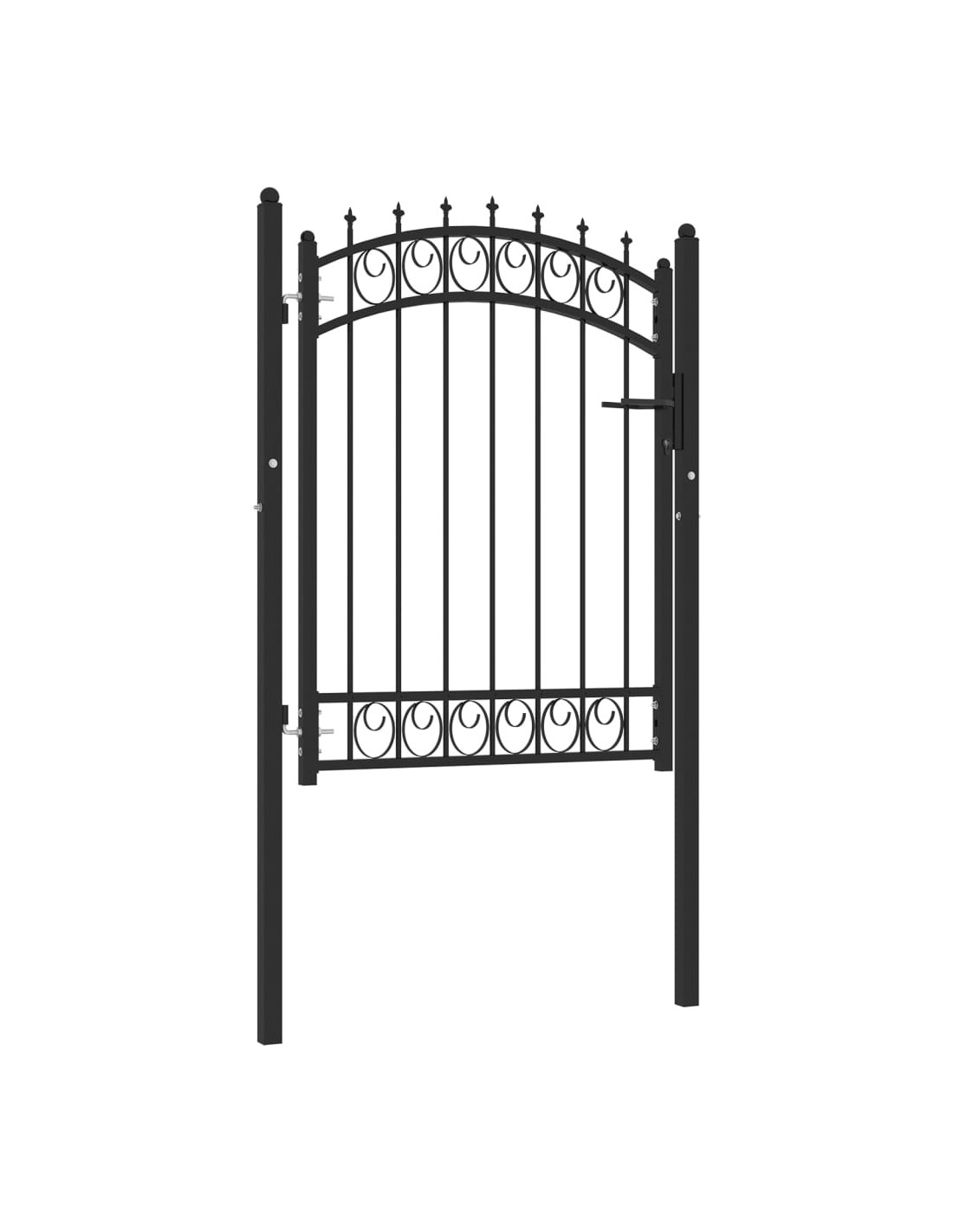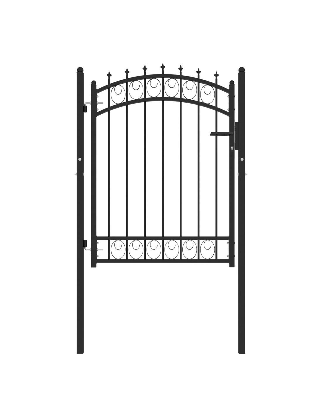 Fabbricato in acciaio robusto, il cancello d'ingresso è verniciato a polvere per resistere a ruggine e corrosione. Grazie alle barre verticali con punte e ai robusti sostegni orizzontali di rinforzo per il telaio, il nostro cancello da giardino offre la massima sicurezza. In aggiunta, il design ad arco conferisce un tono elegante all'ingresso. È inoltre dotato di una serratura con tre chiavi e viene fornito con due pali robusti, dotati di resistenti cerniere, per una facile installazione.