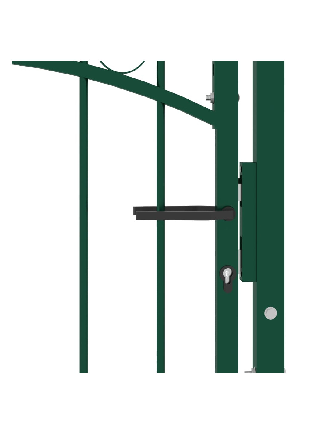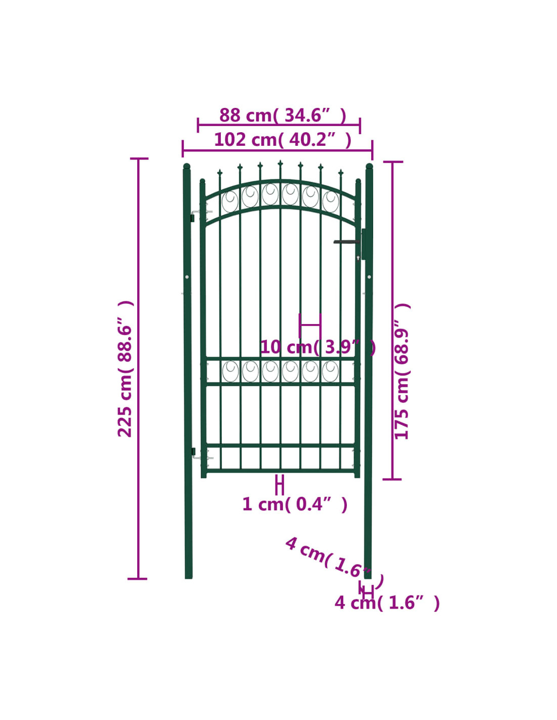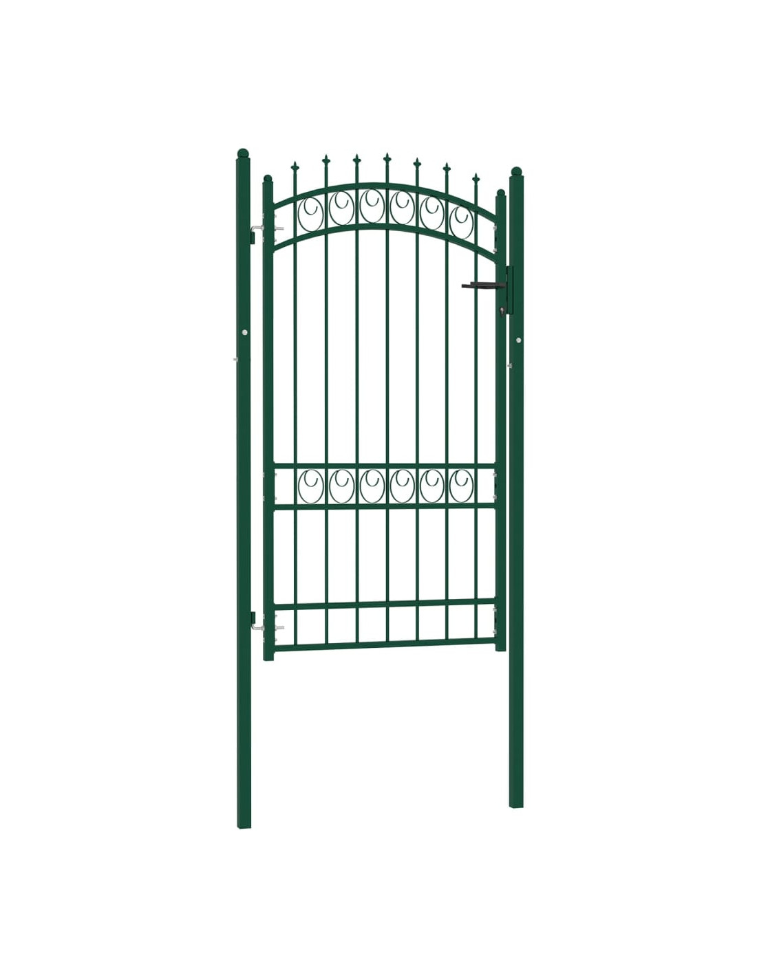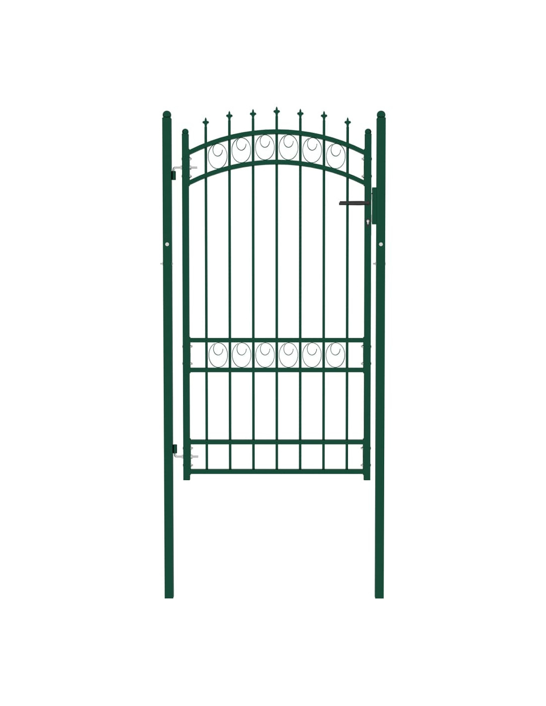 Fabbricato in acciaio robusto, il cancello d'ingresso è verniciato a polvere per resistere a ruggine e corrosione. Grazie alle barre verticali con punte e ai robusti sostegni orizzontali di rinforzo per il telaio, il nostro cancello da giardino offre la massima sicurezza. In aggiunta, il design ad arco conferisce un tono elegante all'ingresso. È inoltre dotato di una serratura con tre chiavi e viene fornito con due pali robusti, dotati di resistenti cerniere, per una facile installazione.