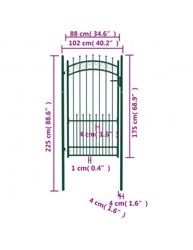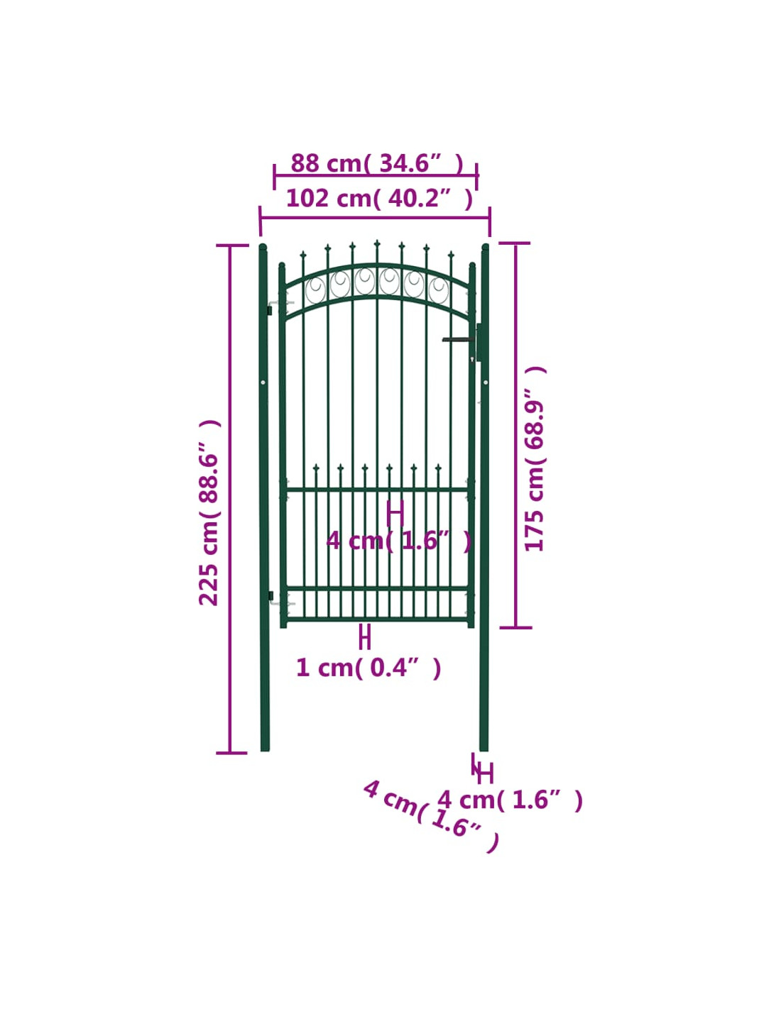 Cancello per Recinzione con Punte in Acciaio 100x175 cm Verde