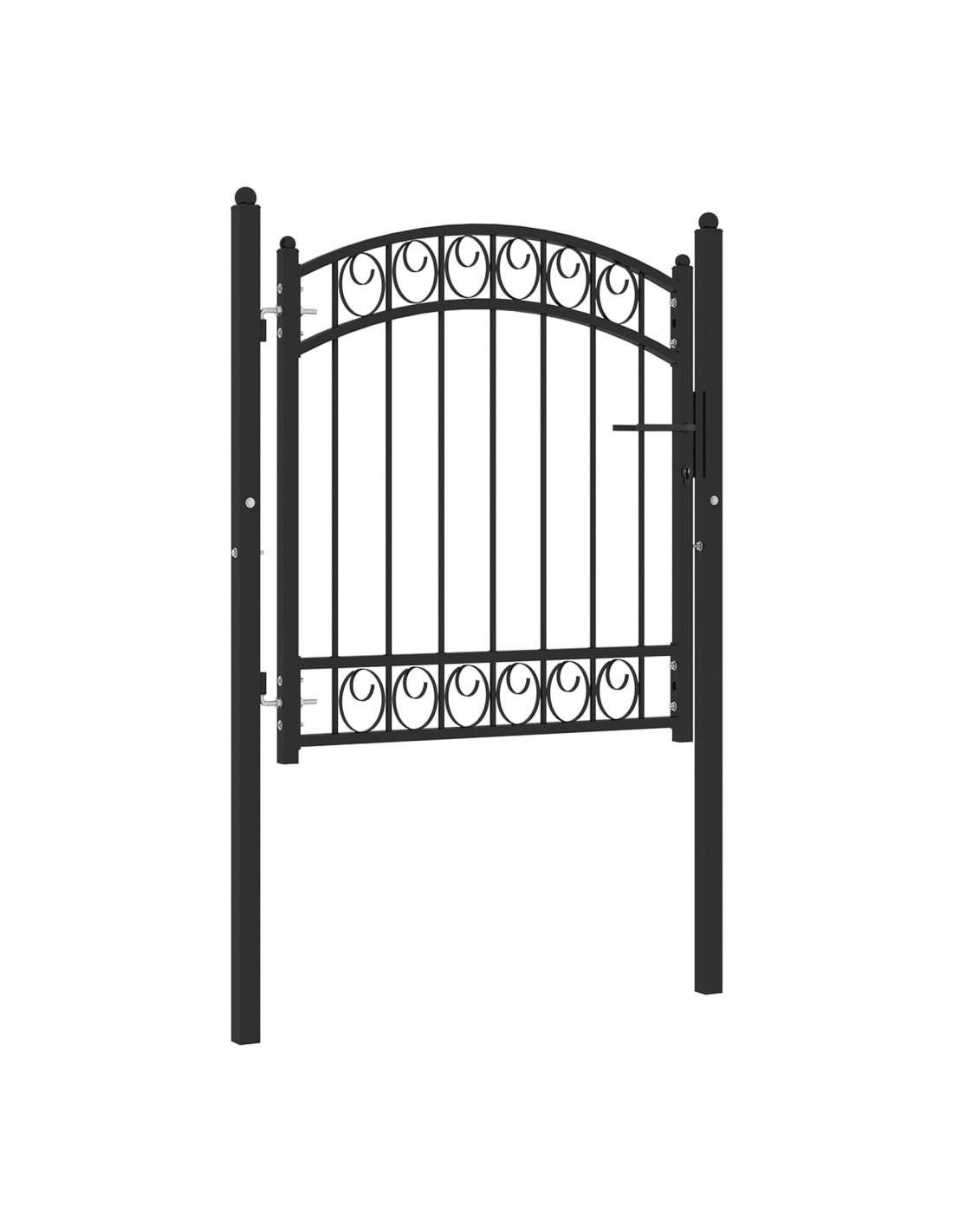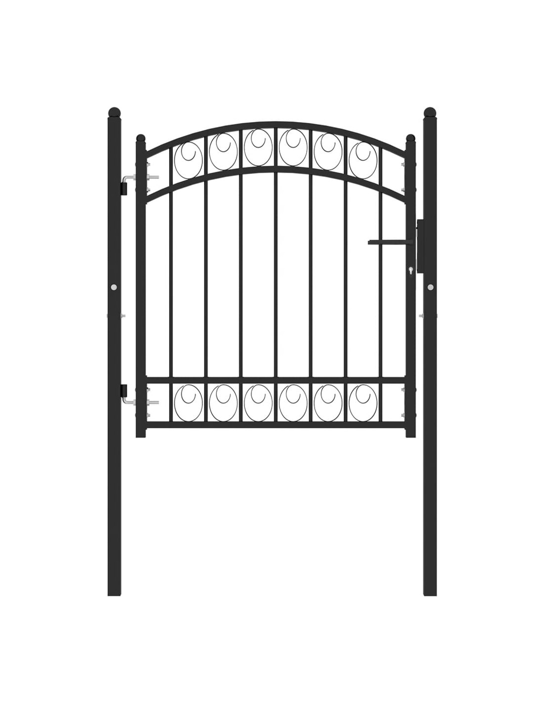 Grazie all'elegante design ad arco e ai robusti sostegni orizzontali di rinforzo per il telaio, il nostro cancello da giardino offre la massima sicurezza, fornendo uno splendido punto di ingresso nella vostra proprietà. Fabbricato in acciaio robusto, l'ingresso è verniciato a polvere per resistere a ruggine e corrosione. È inoltre dotato di una serratura con tre chiavi e viene fornito con due pali robusti, dotati di resistenti cerniere, per una facile installazione.