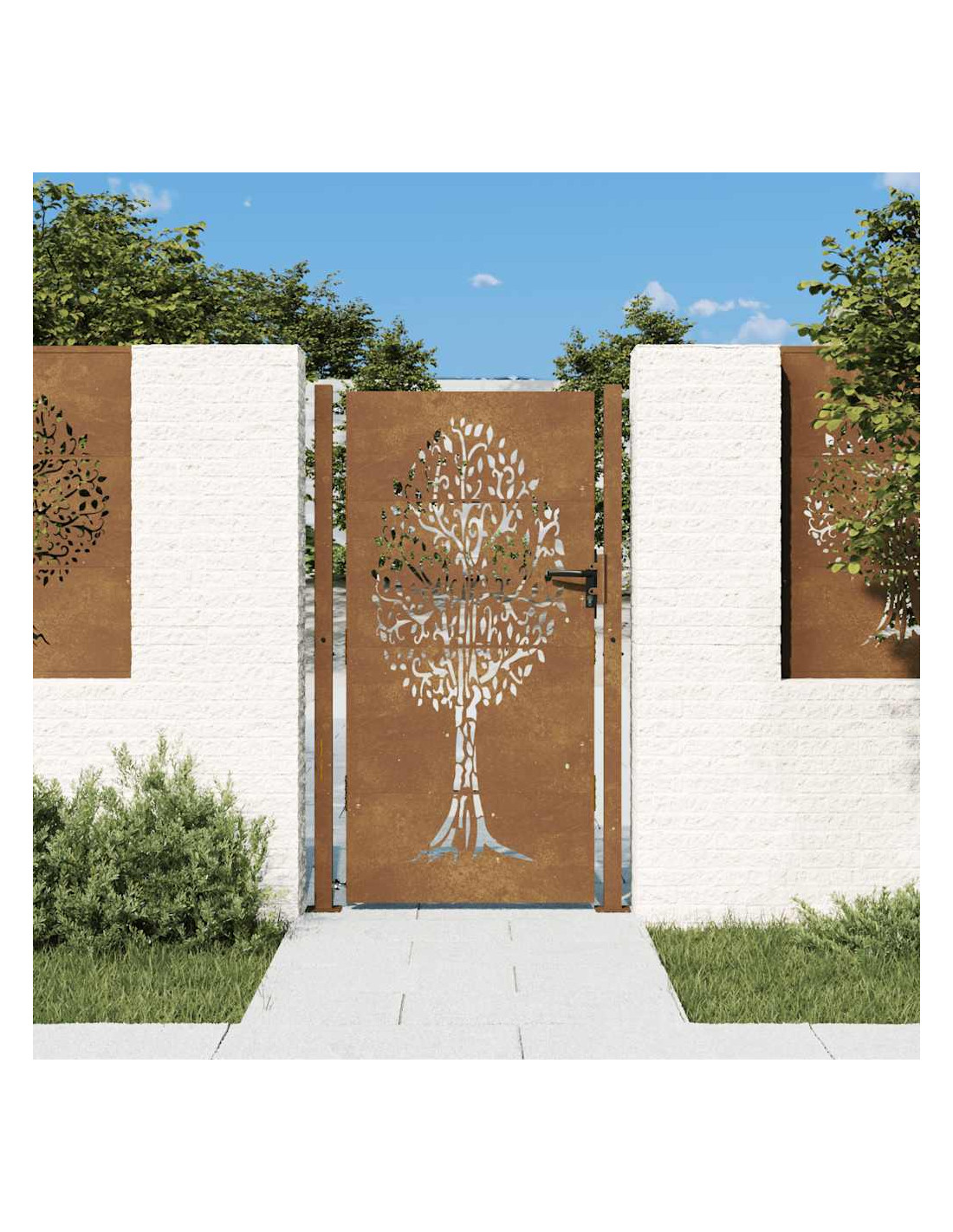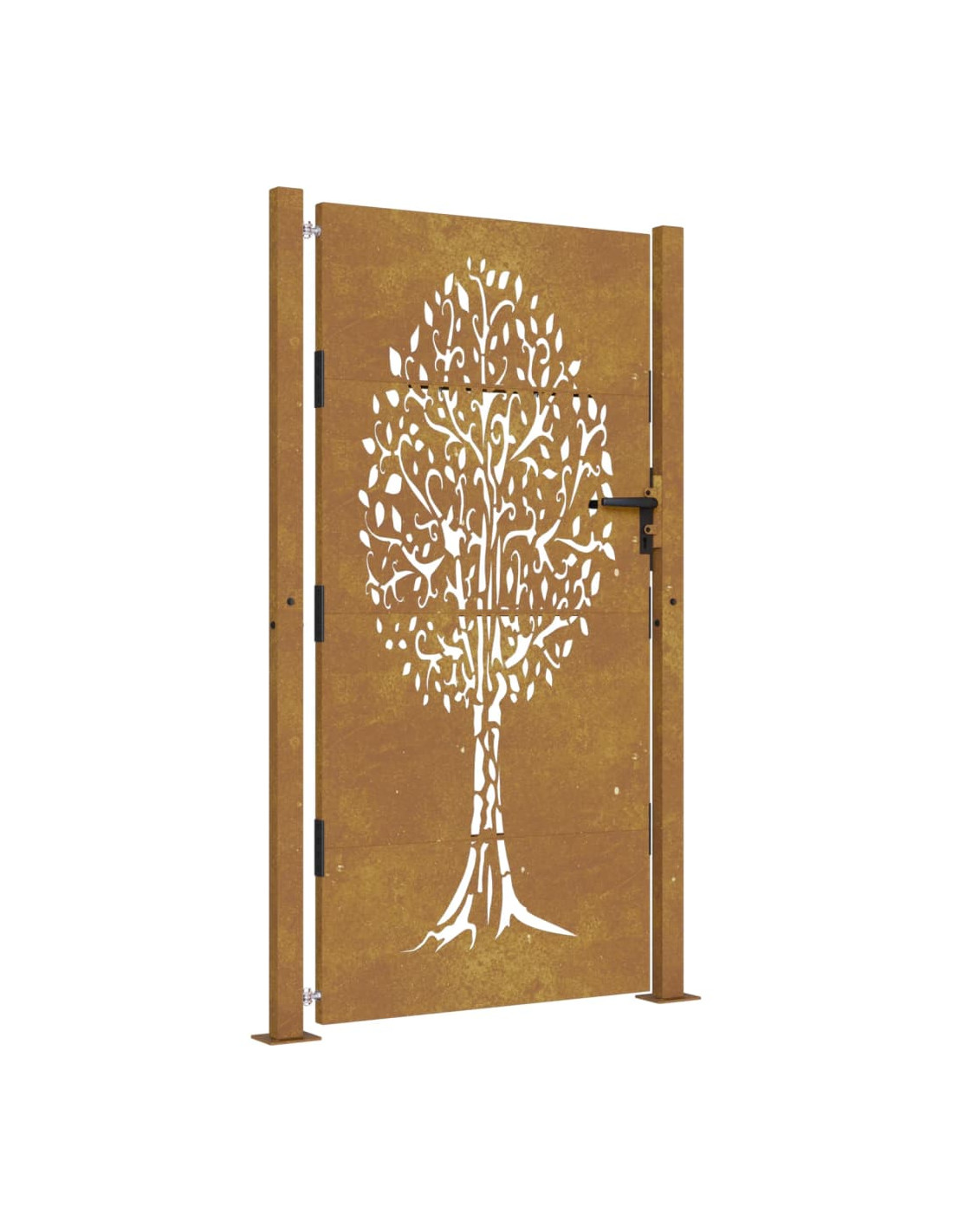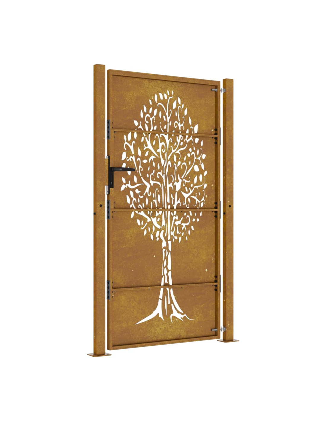 - Materiale durevole: il cancello in metallo è realizzato in acciaio corten. L'acciaio corten è noto anche come acciaio resistente agli agenti atmosferici. Questo è anticorrosivo per sua stessa natura. Sviluppa uno strato protettivo arrugginito contro la corrosione alla prima esposizione agli agenti atmosferici. Quindi, non è necessario dipingerlo. Questo può aiutarvi a risparmiare sui costi di manutenzione e riparazione. Il caratteristico colore marrone dell'acciaio corten attirerà sicuramente l'attenzione. Infine, l'acciaio resistente agli agenti atmosferici è eccezionalmente durevole e resisterà alla prova del tempo.