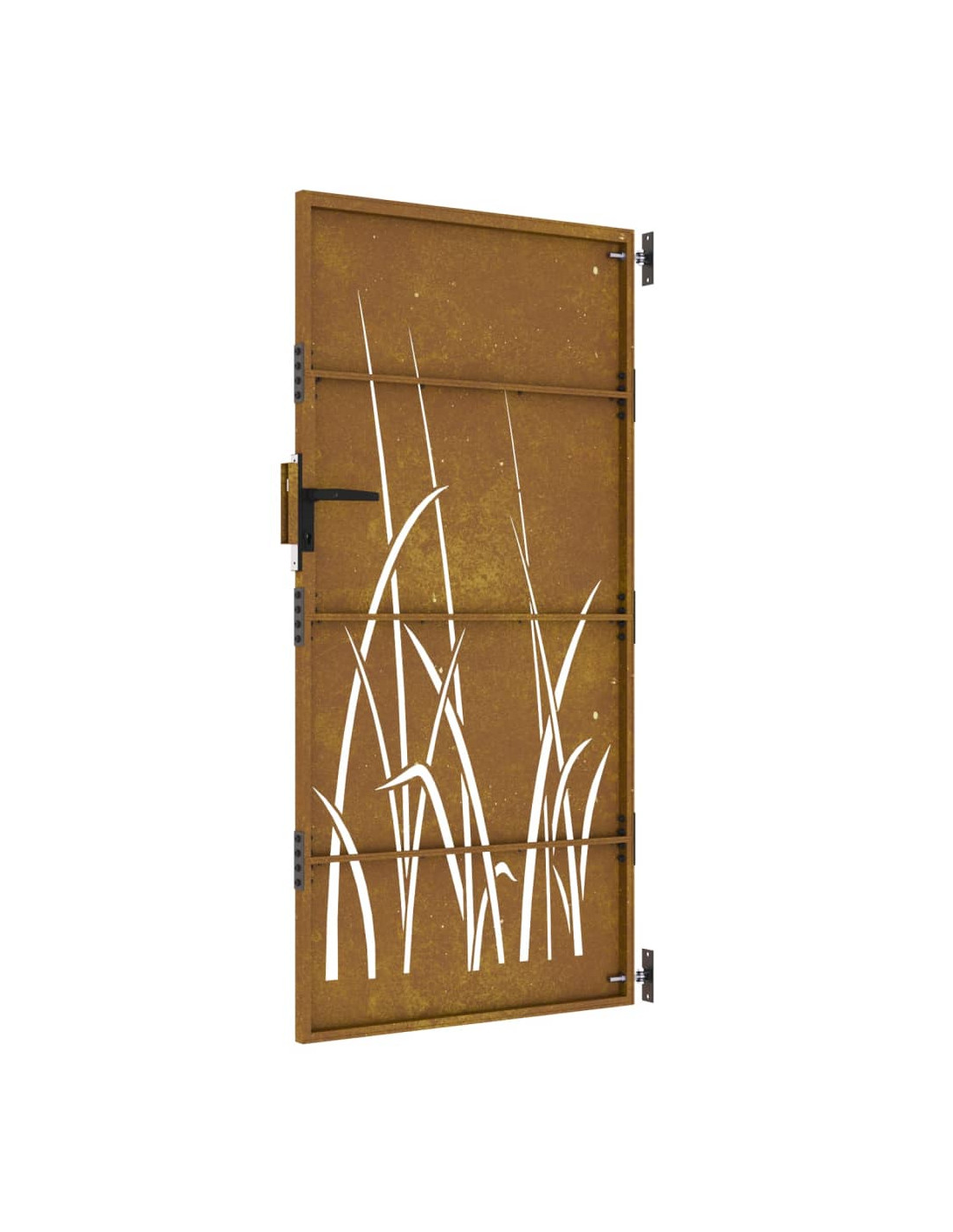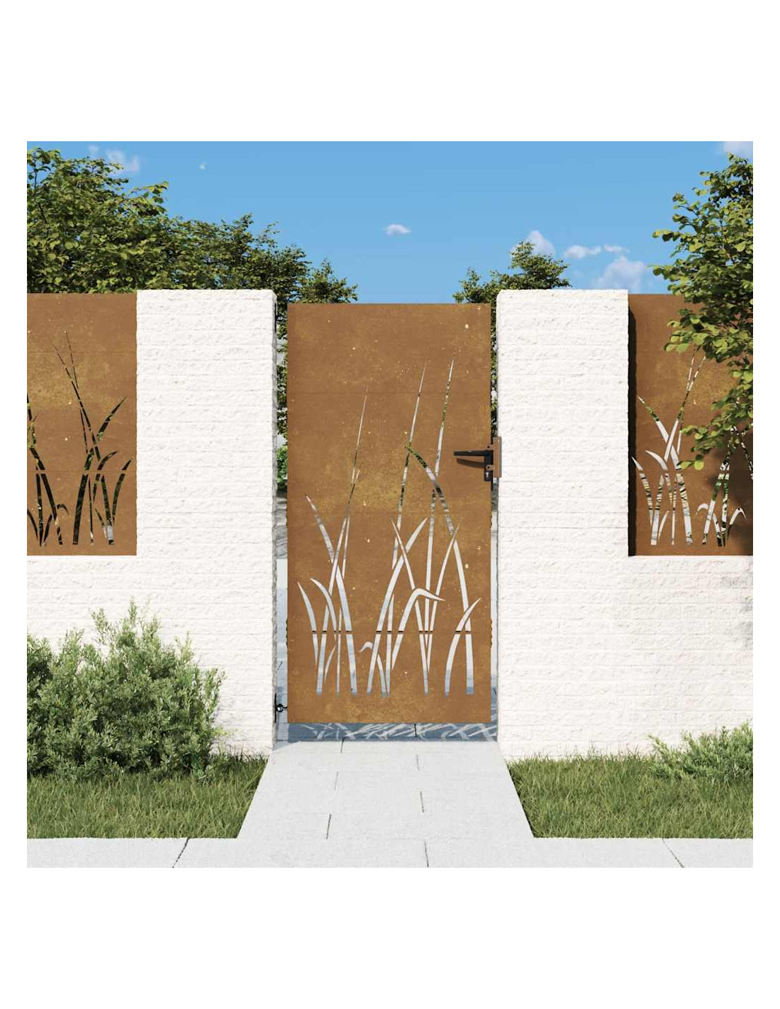 - Materiale durevole: il cancello in metallo è realizzato in acciaio corten. L'acciaio corten è noto anche come acciaio resistente agli agenti atmosferici. Questo è anticorrosivo per sua stessa natura. Sviluppa uno strato protettivo arrugginito contro la corrosione alla prima esposizione agli agenti atmosferici. Quindi, non è necessario dipingerlo. Questo può aiutarvi a risparmiare sui costi di manutenzione e riparazione. Il caratteristico colore marrone dell'acciaio corten attirerà sicuramente l'attenzione. Infine, l'acciaio resistente agli agenti atmosferici è eccezionalmente durevole e resisterà alla prova del tempo.