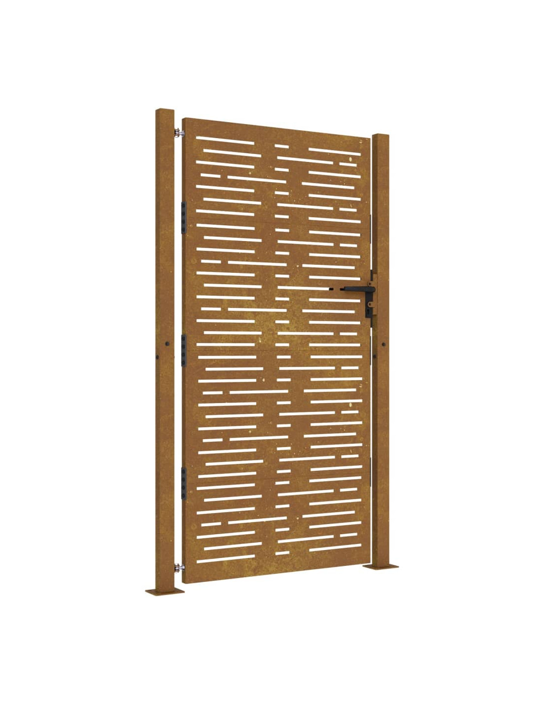 - Materiale durevole: il cancello in metallo è realizzato in acciaio corten. L'acciaio corten è noto anche come acciaio resistente agli agenti atmosferici. Questo è anticorrosivo per sua stessa natura. Sviluppa uno strato protettivo arrugginito contro la corrosione alla prima esposizione agli agenti atmosferici. Quindi, non è necessario dipingerlo. Questo può aiutarvi a risparmiare sui costi di manutenzione e riparazione. Il caratteristico colore marrone dell'acciaio corten attirerà sicuramente l'attenzione. Infine, l'acciaio resistente agli agenti atmosferici è eccezionalmente durevole e resisterà alla prova del tempo.