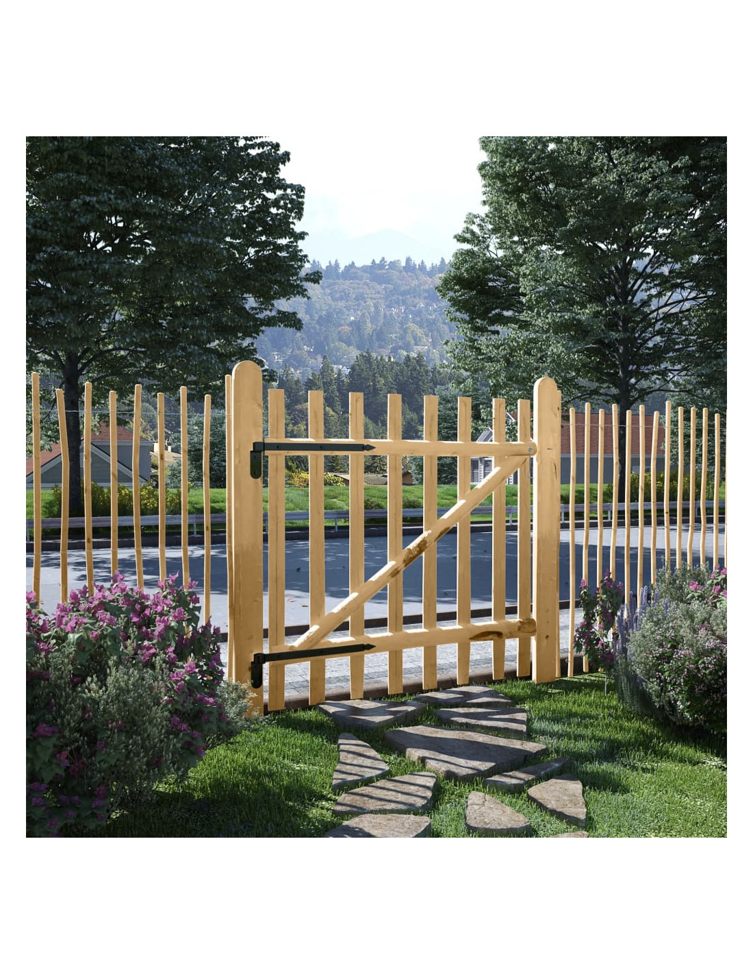 Questo cancello per la recinzione in legno emana un fascino rustico e sarà il punto d'ingresso ideale nella recinzione attorno al vostro giardino o patio.