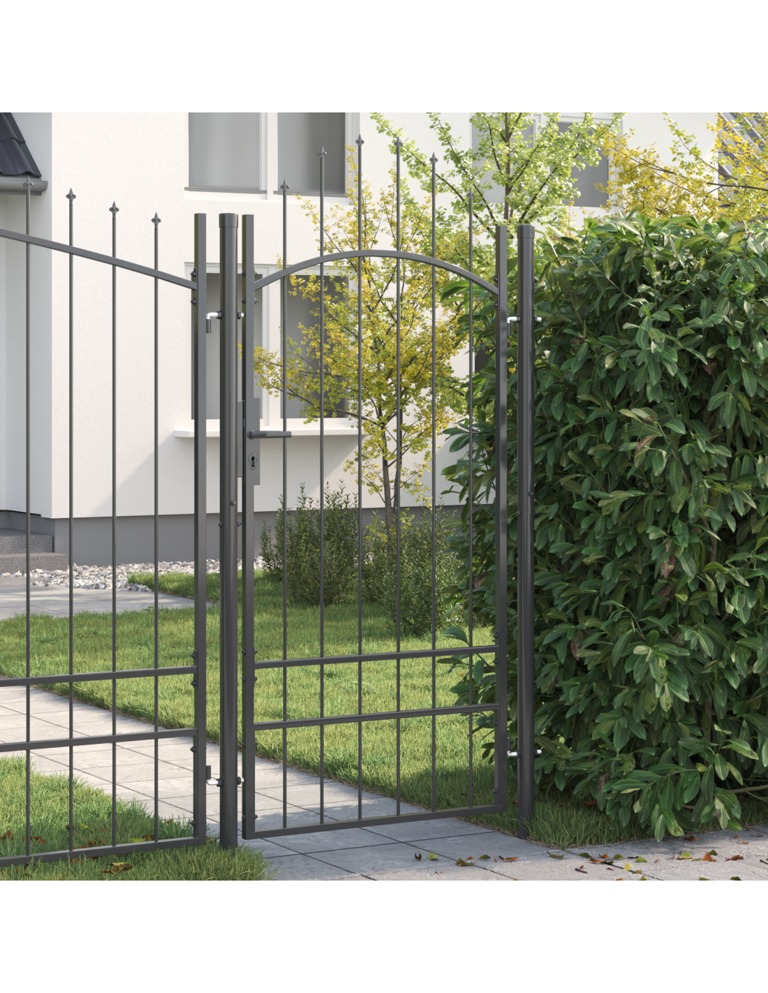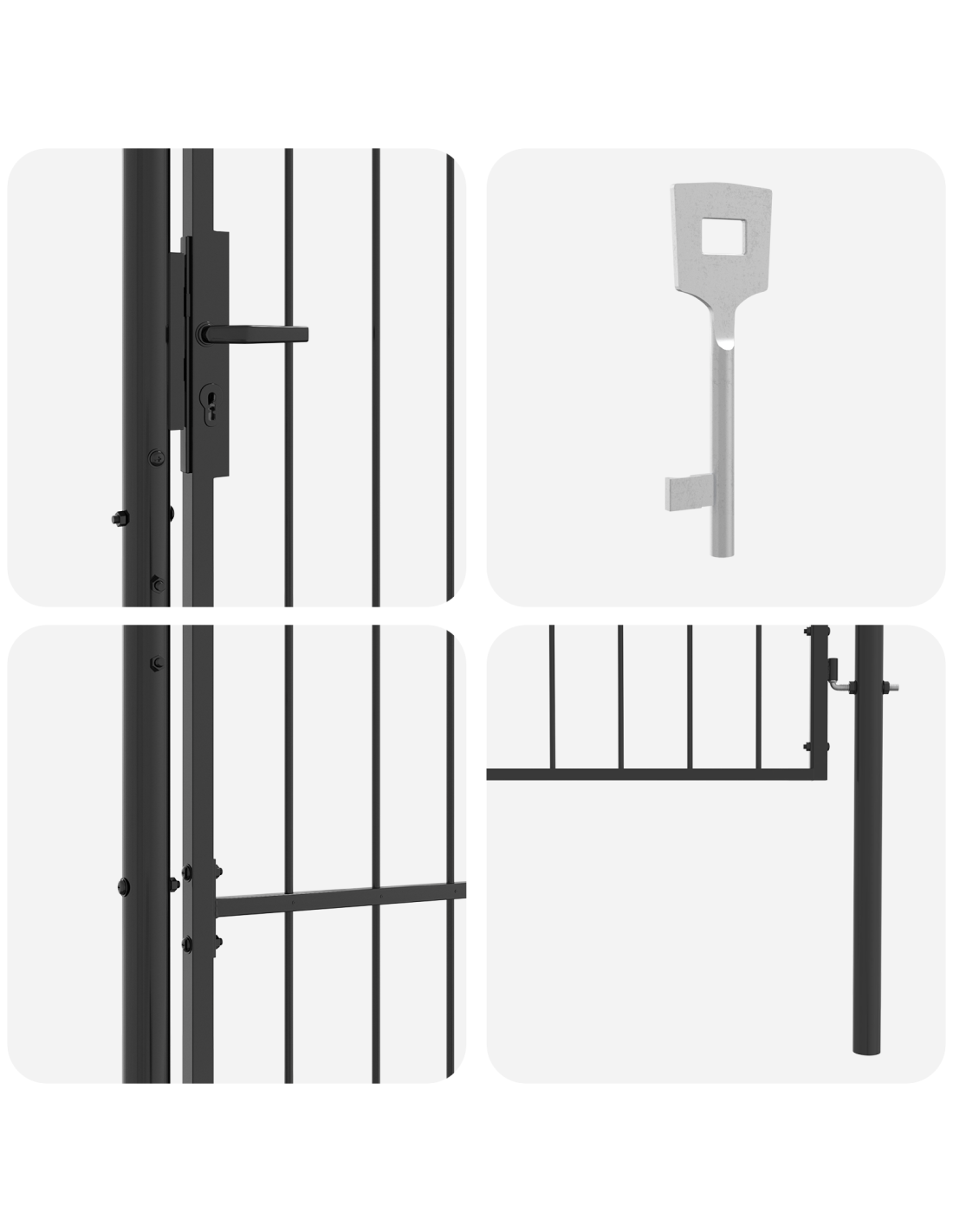 - Costruzione in acciaio: Questo cancello è creato in acciaio resistente, perfetto per affrontare le intemperie. La sua struttura garantisce una durata eccezionale e lo rende una barriera sicura per il tuo spazio esterno.