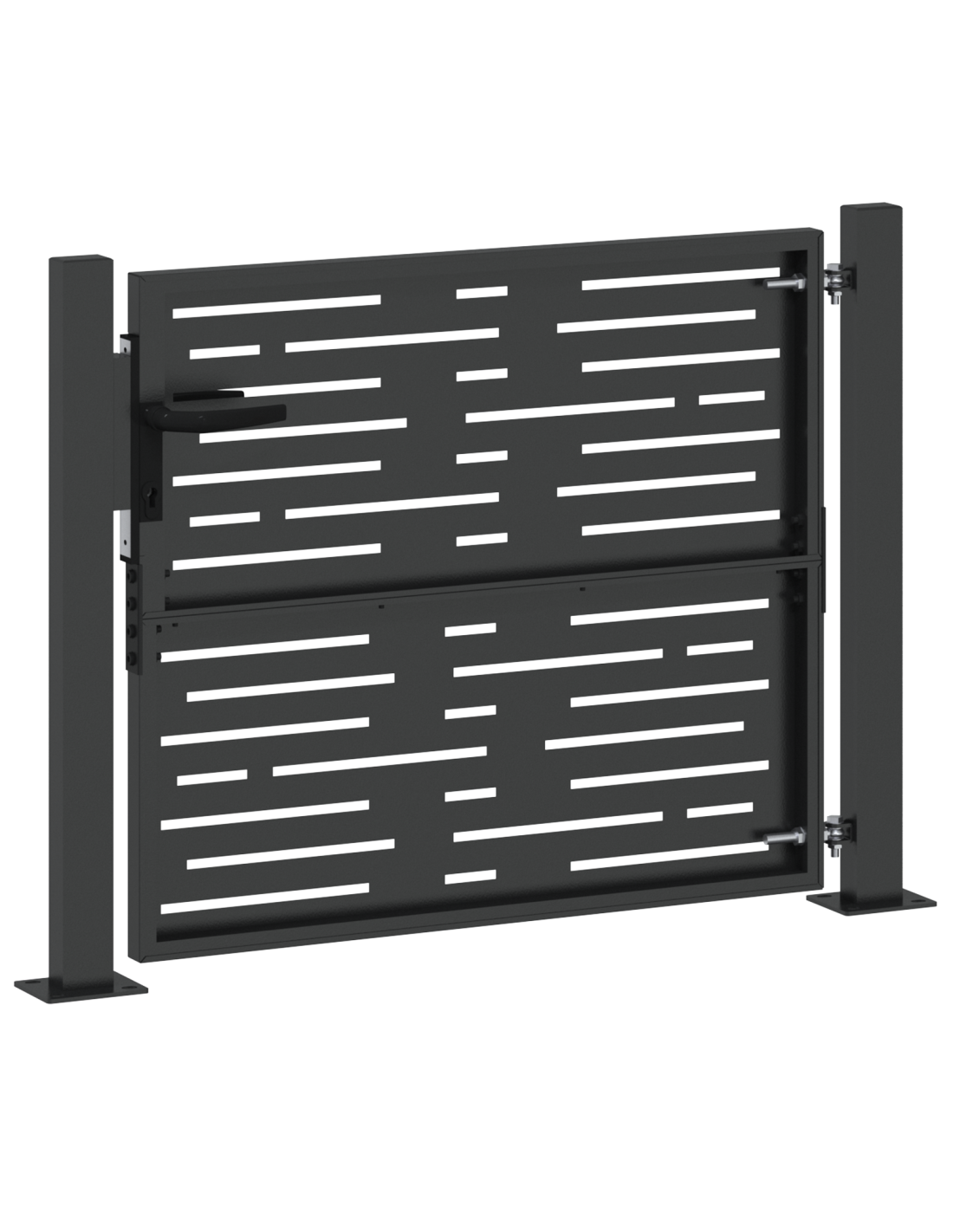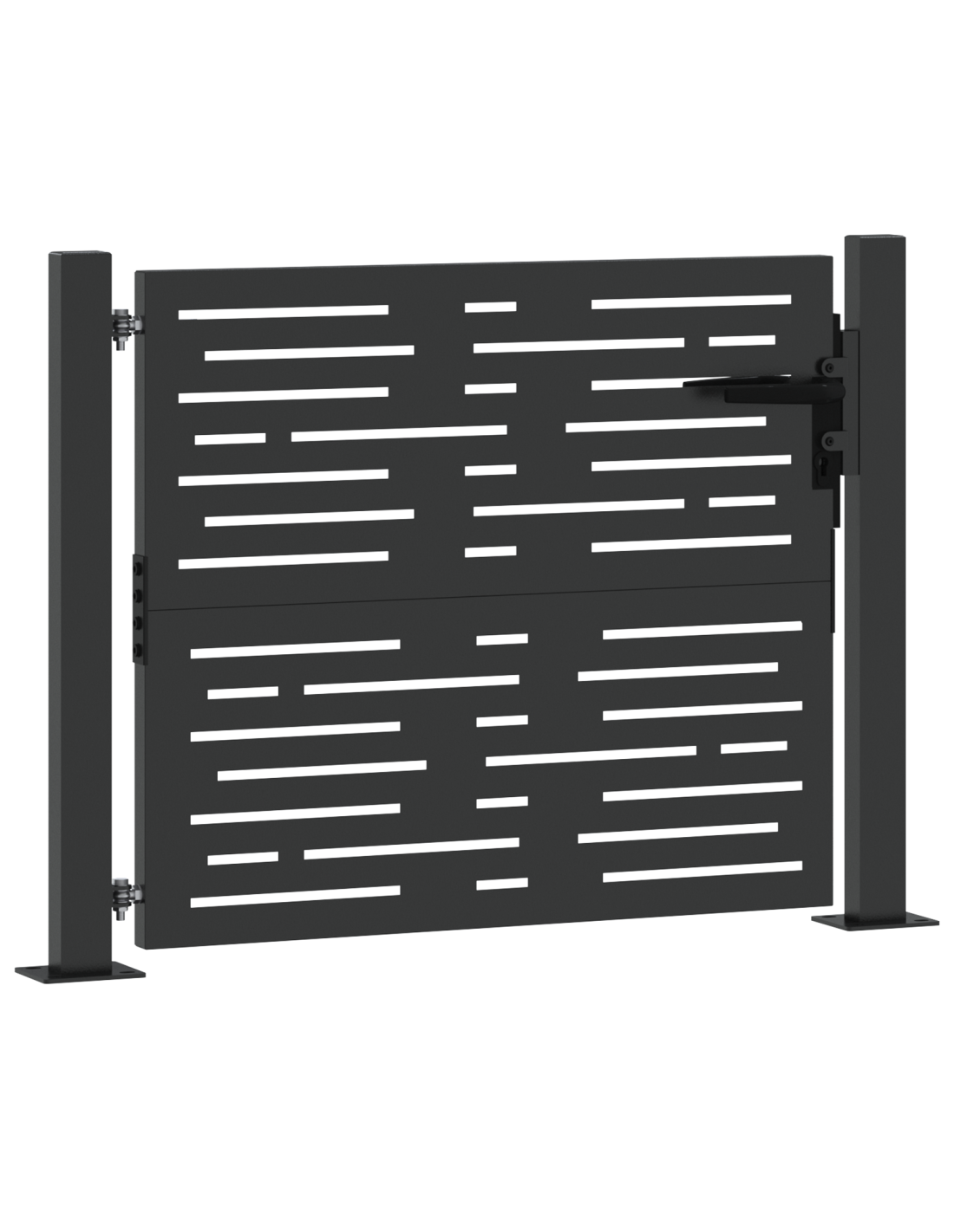 Questo cancello da giardino in metallo è la combinazione perfetta di stile e robustezza, offrendo un'accesso chic e sicuro per ogni giardino o spazio esterno. Con un aspetto moderno e avvincente grazie alla verniciatura a polvere e al design tagliato al laser, risalta per il suo fascino minimalista. È adatto a chi cerca un look estetico insieme a funzionalità, rappresenta davvero un must have per il design moderno nel tuo giardino. Questo cancello fa da porta d'ingresso accogliente e la sua semplicità elegante si adatta a diversi contesti, elevando anche gli spazi verdi più comuni.