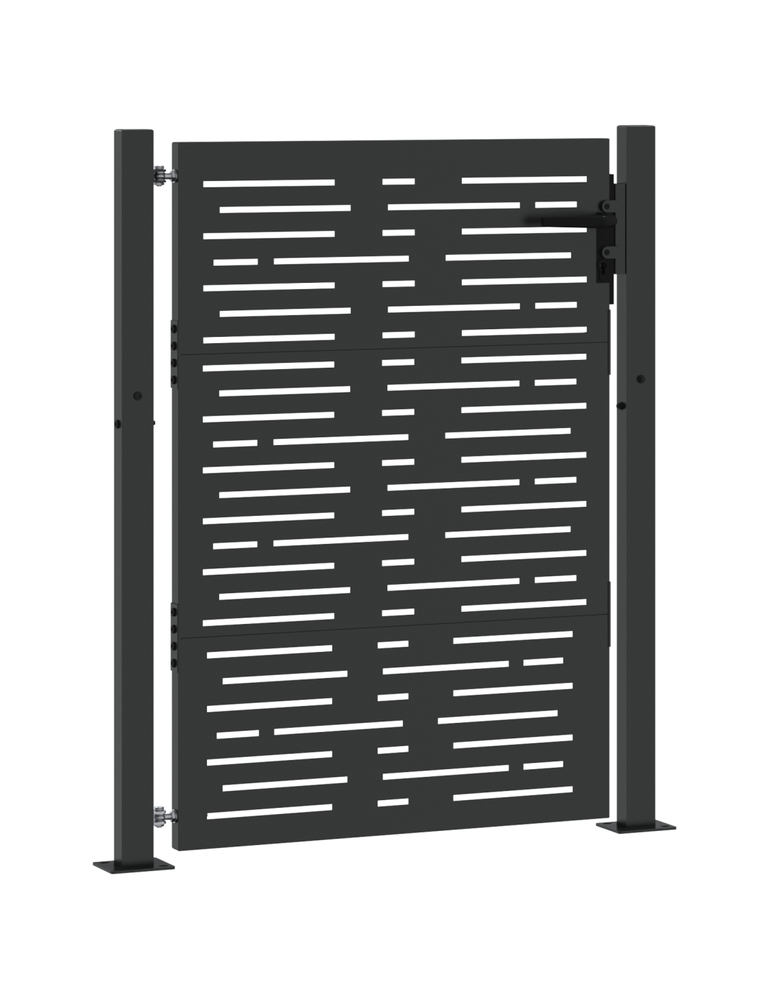 Questo cancello da giardino in metallo è la combinazione perfetta di stile e robustezza, offrendo un'accesso chic e sicuro per ogni giardino o spazio esterno. Con un aspetto moderno e avvincente grazie alla verniciatura a polvere e al design tagliato al laser, risalta per il suo fascino minimalista. È adatto a chi cerca un look estetico insieme a funzionalità, rappresenta davvero un must have per il design moderno nel tuo giardino. Questo cancello fa da porta d'ingresso accogliente e la sua semplicità elegante si adatta a diversi contesti, elevando anche gli spazi verdi più comuni.