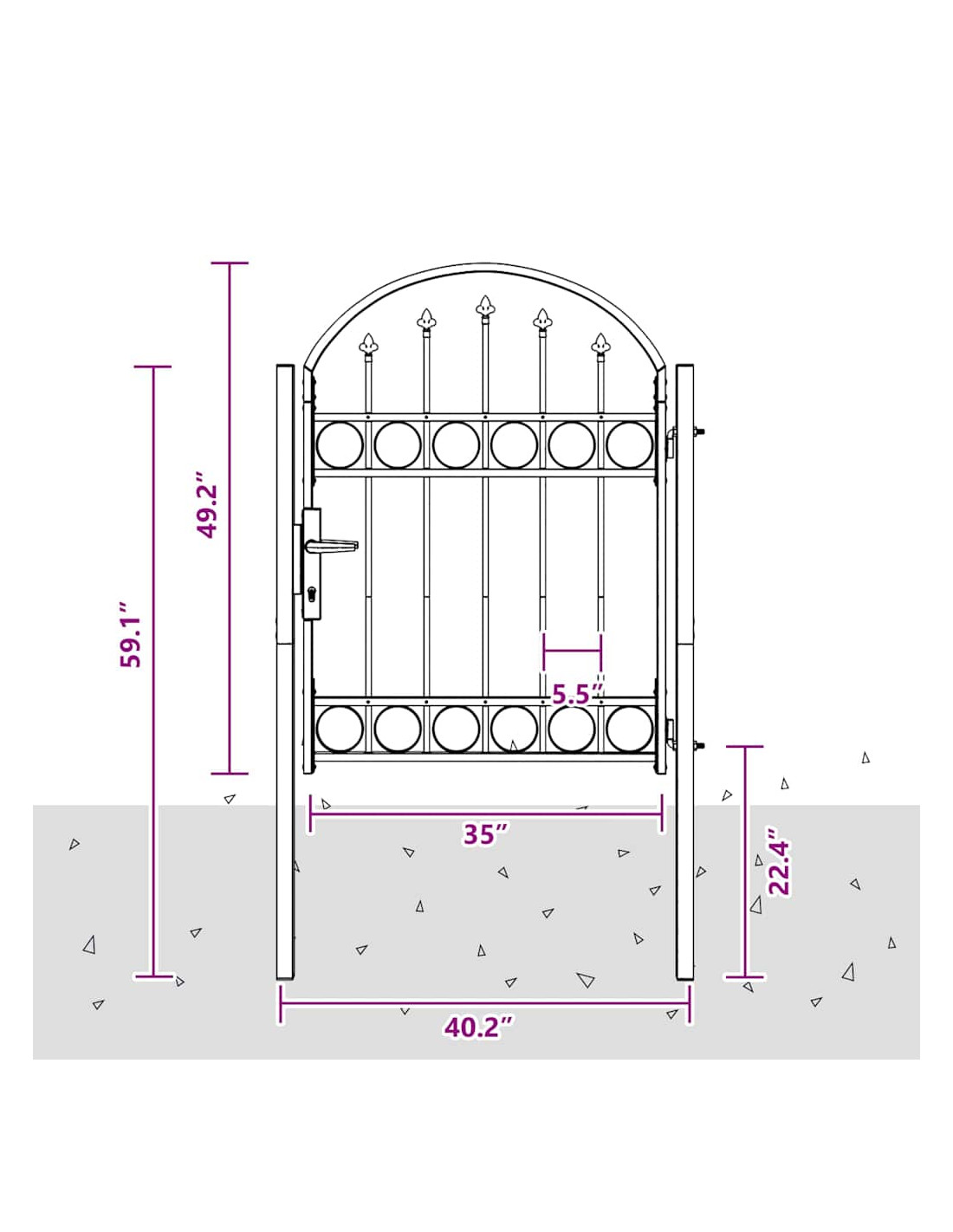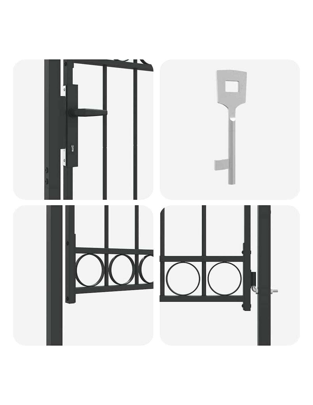 - Materiali: Realizzato in acciaio verniciato a polvere, questo cancello è resistente e ha un aspetto elegante. Questo materiale garantisce robustezza contro gli agenti esterni e un uso prolungato all'aperto. La verniciatura a polvere fornisce un ulteriore strato di protezione, rendendo il cancello resistente a graffi e usura.