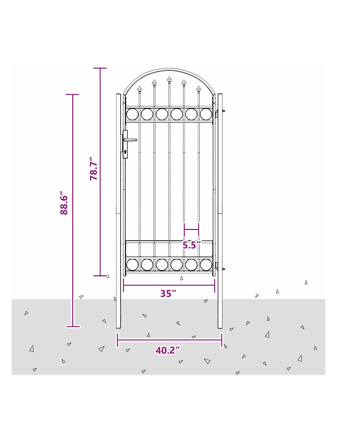 - Materiali: Realizzato in acciaio verniciato a polvere, questo cancello è resistente e ha un aspetto elegante. Questo materiale garantisce robustezza contro gli agenti esterni e un uso prolungato all'aperto. La verniciatura a polvere fornisce un ulteriore strato di protezione, rendendo il cancello resistente a graffi e usura.