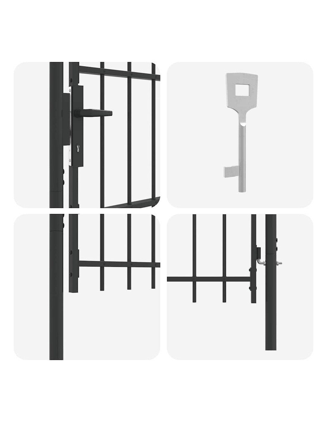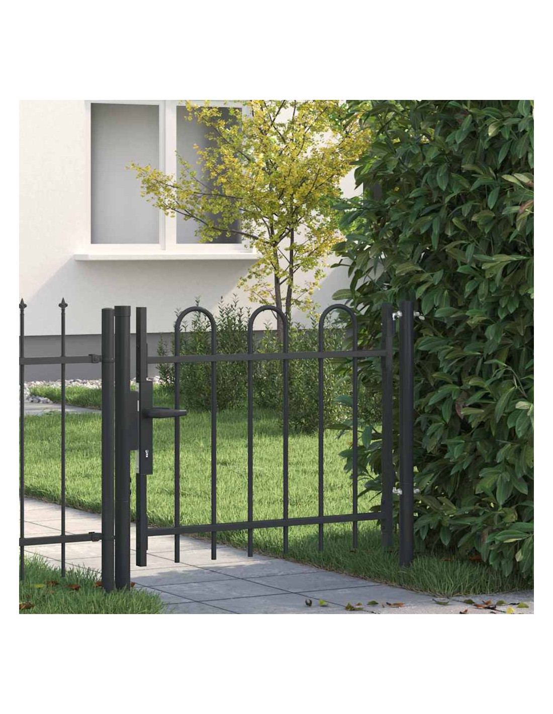 Questo cancello in metallo è pratico e resistente, perfetto per proteggere il tuo giardino o la tua terrazza con stile. È costruito in acciaio verniciato a polvere di alta qualità e unisce design moderno e funzionalità, per chi cerca praticità e bellezza all'esterno.