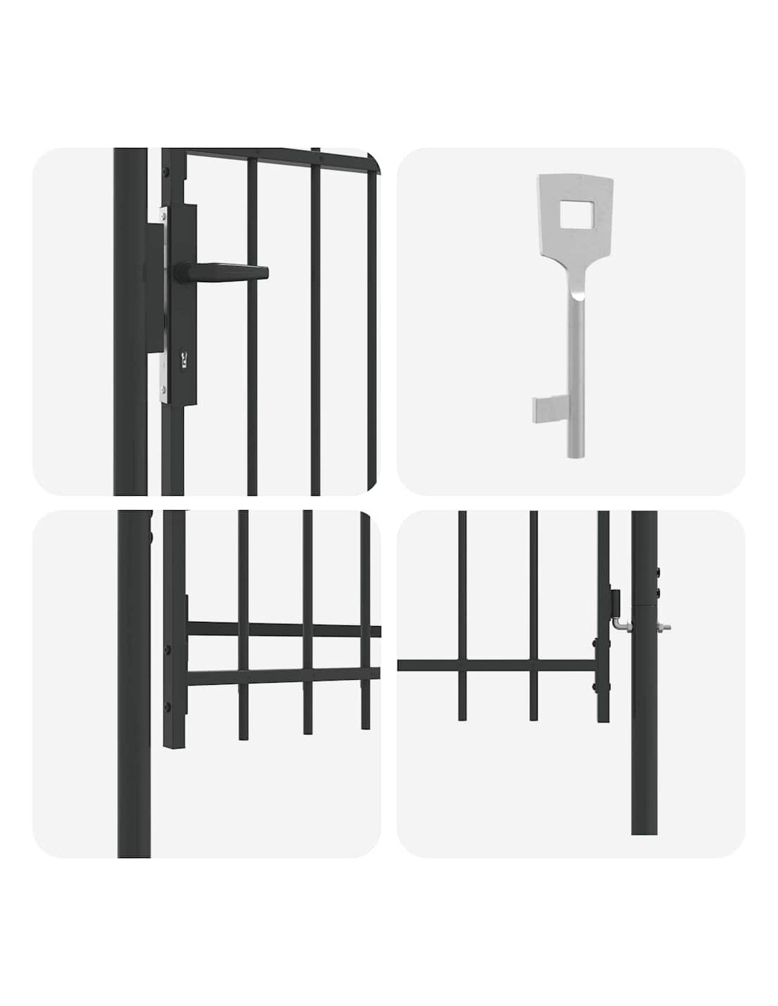 Questo cancello in metallo è pratico e resistente, perfetto per proteggere il tuo giardino o la tua terrazza con stile. È costruito in acciaio verniciato a polvere di alta qualità e unisce design moderno e funzionalità, per chi cerca praticità e bellezza all'esterno.