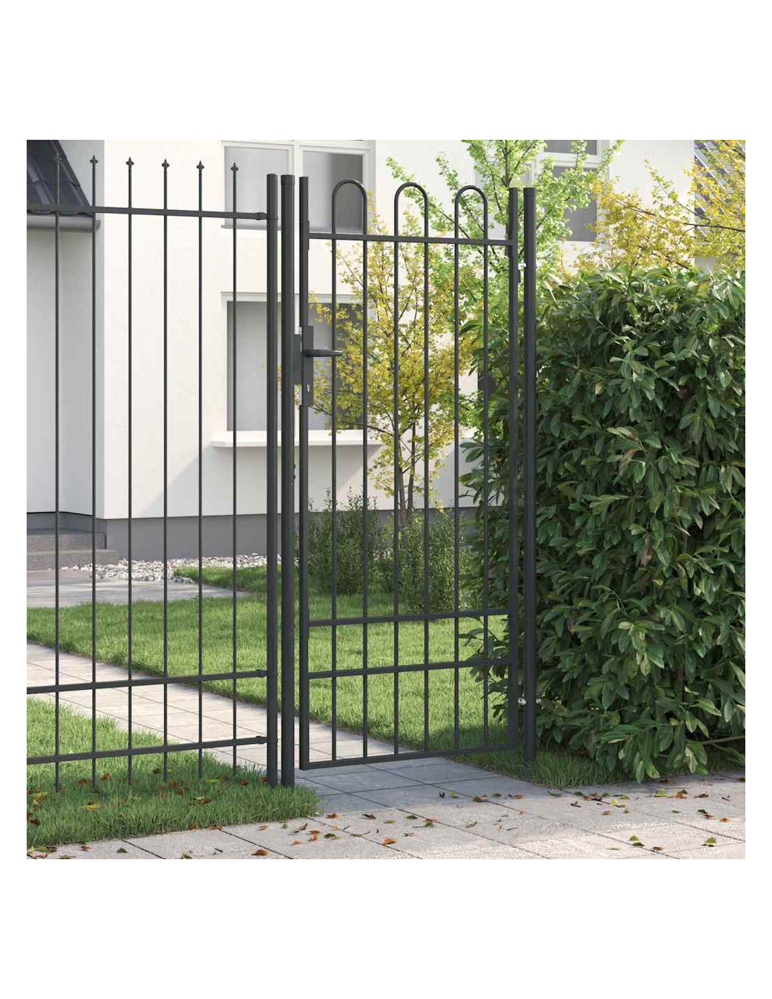 Questo cancello in metallo è pratico e resistente, perfetto per proteggere il tuo giardino o la tua terrazza con stile. È costruito in acciaio verniciato a polvere di alta qualità e unisce design moderno e funzionalità, per chi cerca praticità e bellezza all'esterno.