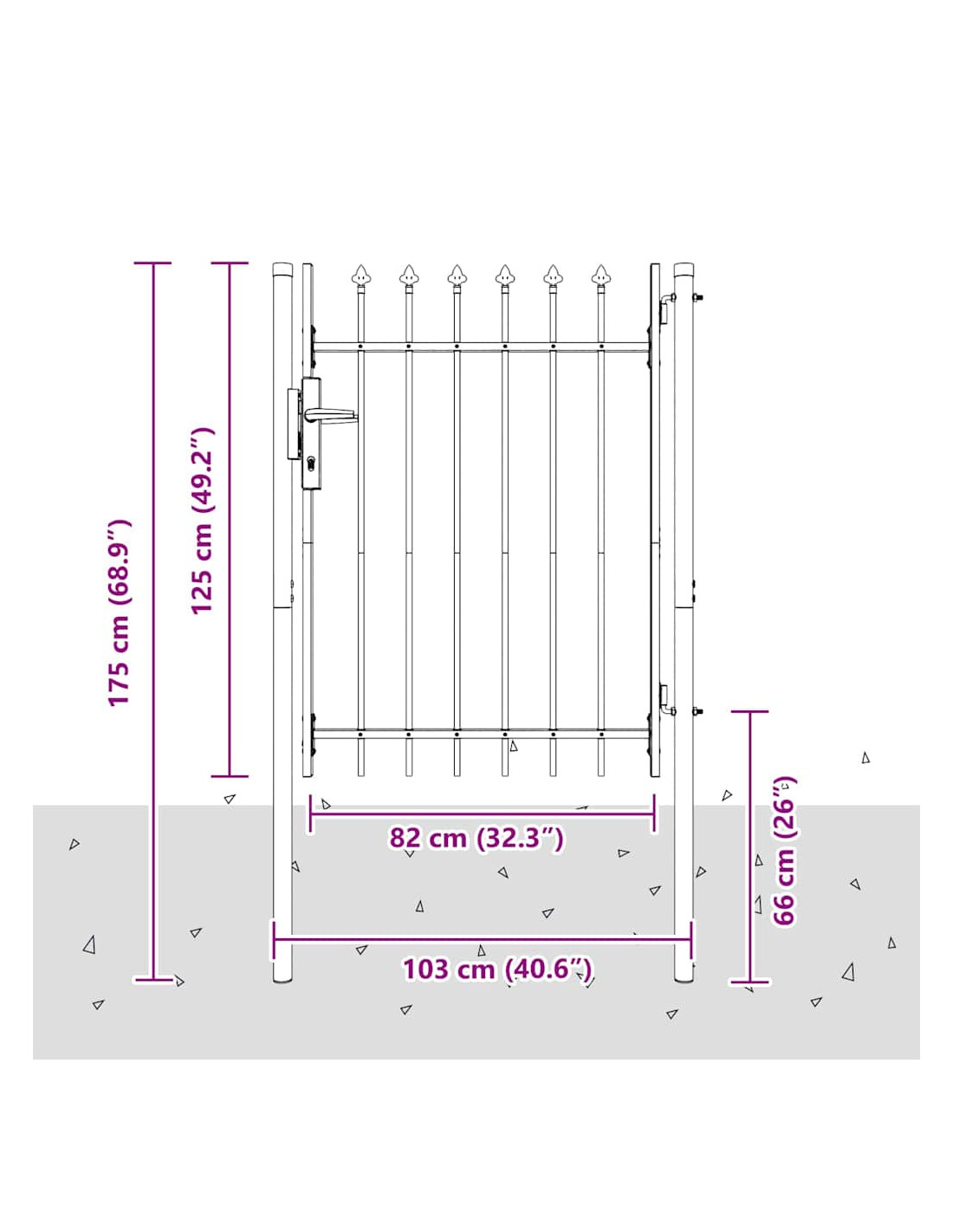 - Acciaio Verniciato a Polvere: Questo cancello è realizzato in acciaio verniciato a polvere super resistente, perfetto per l'esterno. Garantisce longevità e affidabilità, anche in condizioni meteorologiche avverse.